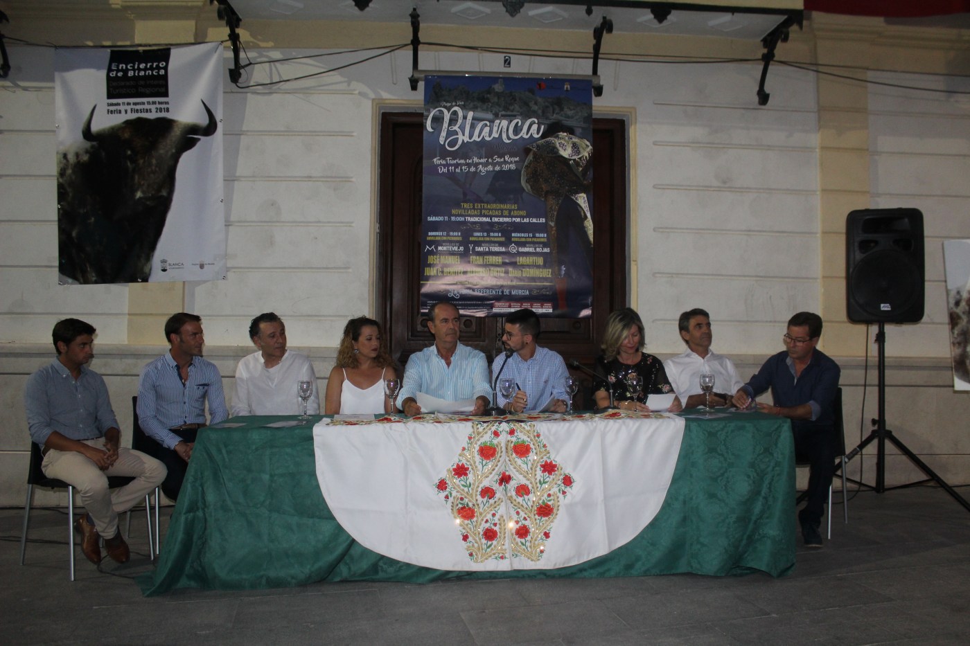 En la noche de hoy viernes y en el privilegiado marco de la plaza de la Iglesia de Blanca, ha tenido lugar la presentación de la Feria Taurina 2018, que constará de tres novilladas con picadores. En el acto ha estado presente el ganadero y presidente de la Fundación del Toro de Lidia Victorino Martín, acompañando por Juan de Pádua, de la empresa Toros El Redondel, encargada de organizar los festejos este año. Ha presidido la mesa la alcaldesa de la localidad Ester Hortelano, acompañada por la concejal Lucía Ato, el representante de la empresa en Murcia Antonio Mondéjar, el artista ceheginero Nicolás de Maya y los novilleros murcianos José Manuel y Fran Ferrer. Nuestro compañero Antonio José Candel ha presentado el acto.
