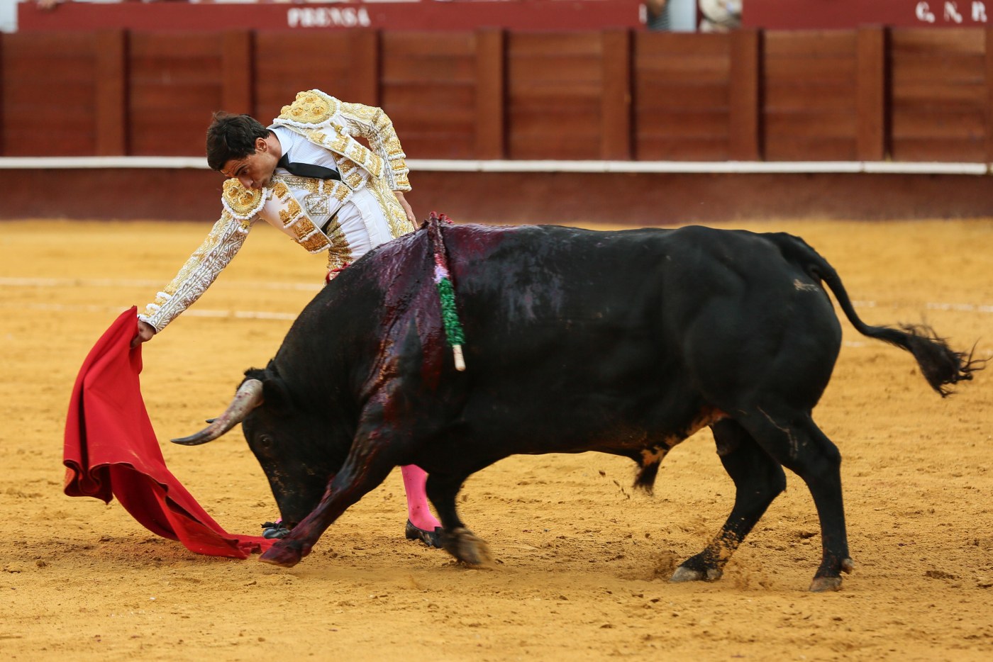 Muy suave recibió el sevillano El Cid al ‘colorao bragao’ que abrió plaza. El Cid, soltó las muñecas con excelencia y temple, interpretando el lance con suma prestancia a un toro que metió bien la cara y remató antes en burladeros echando la cara abajo. Al rematar el saludo se apreció que el ‘dulce’ Lagunajanda estaba muy justito de poder. Dos varas medidas y brindis al público. Manuel Jesús lo tanteó de inicio con suavidad y empaque, en unos muletazos con sabor. La siguiente tanda lo embarcó a diestras con ligazón y con la misma suavidad de inicio, aunque empezó a protestar en el viaje. A mayor obligación más soltaba la cara pero continuaba repitiendo su embestida. A zurdas hubo una tanda de mucha exigencia y trazo hondo donde El Cid se reencontró con su mayor virtud. El natural eterno se asomó a La Malagueta en tres preciosos momentos. Justo desde ahí, el toro se puso más impertinente -rebrincado- en su desclasada embestida y además se rajó. Lo que pudo ser se esfumó y nos quedamos con ganas de más. Pinchazo, estocada y ovación con saludos.