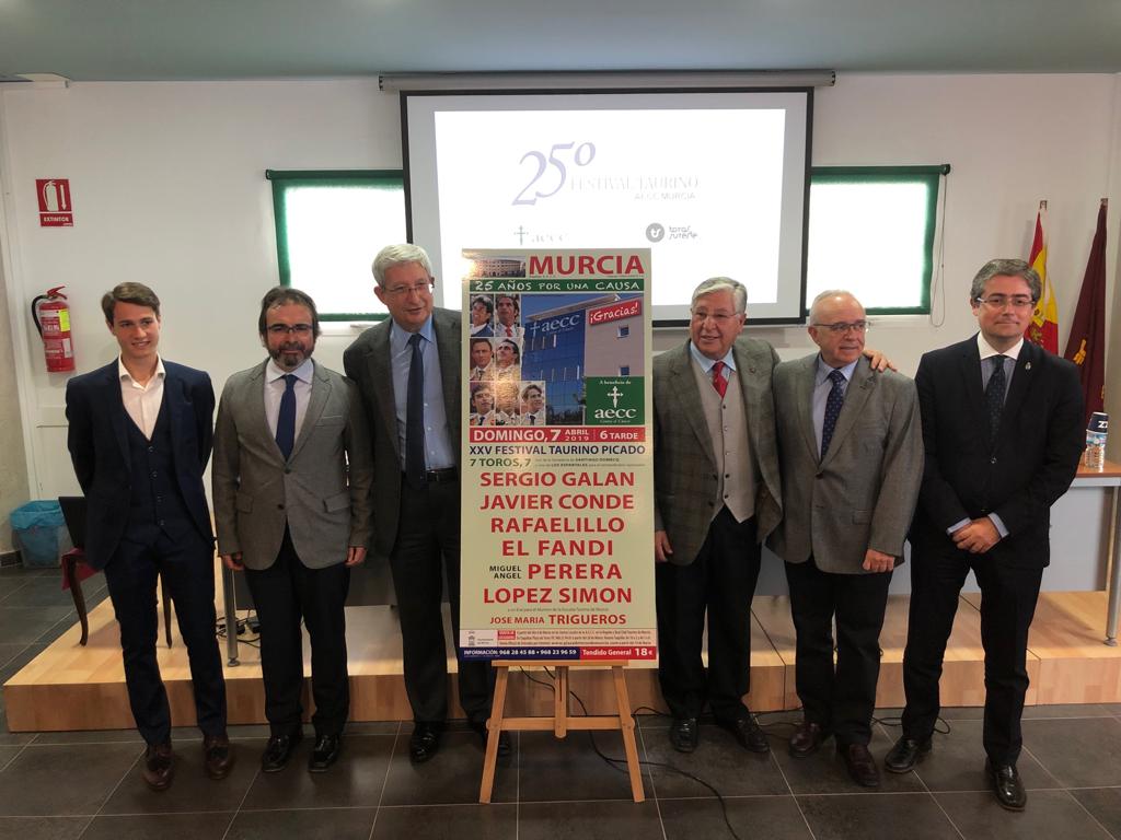 La Asociación Española contra el Cáncer (AECC) y la empresa Toros Sureste S.A. han presentado a primera hora de la tarde de este viernes 15 de febrero el cartel del festival taurino que tradicionalmente se celebra en Murcia a beneficio de esta asociación y que este año cumple su vigésimo quinto aniversario.