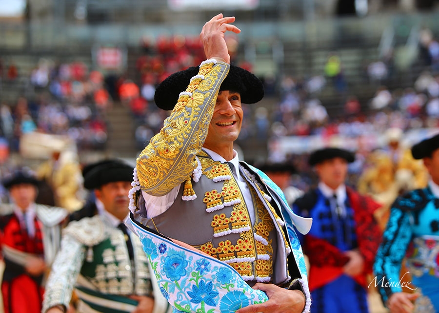 El de Lorca cortó tres orejas a un lote de Victoriano del Río, convirtiéndose, de momento, en el gran triunfador de la feria de Pentecostés al ser el único matador de toros que ha salido a hombros por la Puerta de los Cónsules del coliseo romano de esta ciudad francesa.