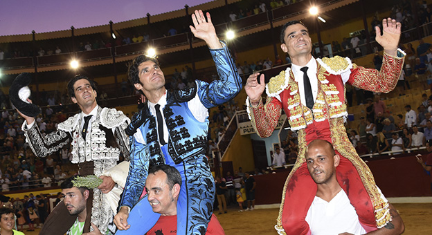 Cieza (Murcia) Corrida de toros. Toros de Núñez de Tarifa, manejables, siendo el cuarto premiado con la vuelta al ruedo, de nombre Morito y 512 Kg de peso. Entrada: Más de media