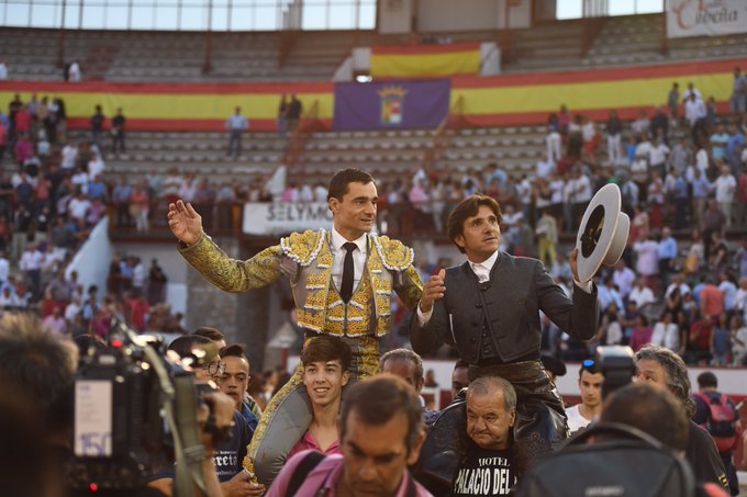 Al primero lo recibió Ventura a lomos de Joselito para dejar dos rejones de temple máximo al ritmo del enorme animal. Con Guadalquivir comenzó el tercio de banderillas, clavando preciso, pero sobre todo templado mucho el galope de costado, con los pitones a dos dedos del estribo. Sensacional el caballero, cuya labor explotó, sin embargo, cuando sacó a Lío, pidió la música y se dedicó a pasar muy despacio por la cara, dejando palos casi sin espacio, casi a cámara lenta, ahora sí, con el tendido a reventar. Con Remate culminó la obra, con tres cortas y una rosa antes del rejonazo que precedió a la oreja.