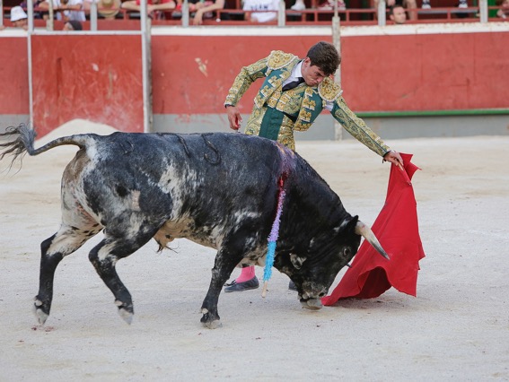 Fotos: Sacris para El Muletazo de su actuación el 14 de agosto ante su primer novillo de «Virgen María», al que cortó los máximos trofeos