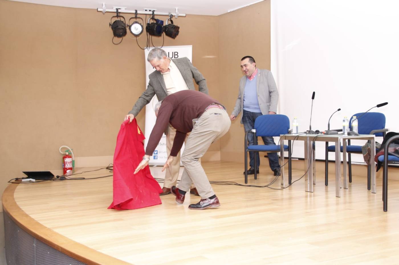 El “cañailla”, como así es conocido entre los profesionales del toro, hizo las delicias de público asistente al acto, que se lo pasó en grande con las anécdotas que el maestro Ruiz Miguel contó sobre su trayectoria profesional.