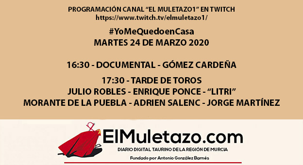 Para la tarde de este martes 24 de marzo en el canal “ElMuletazo1” de Twitch y Youtube les tenemos preparada la siguiente programación: