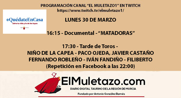 Además la repetición de la tarde de toros, por primera vez, la podrán ver a las 22:00 horas en la página de Facebook: https://www.facebook.com/elmuletazo/
