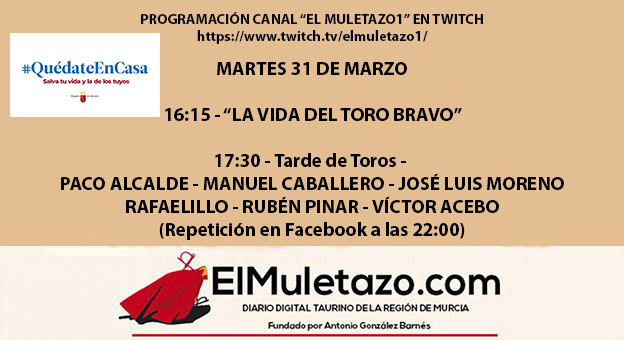 Además la repetición de la tarde de toros, por primera vez, la podrán ver a las 22:00 horas en la página de Facebook: https://www.facebook.com/elmuletazo/