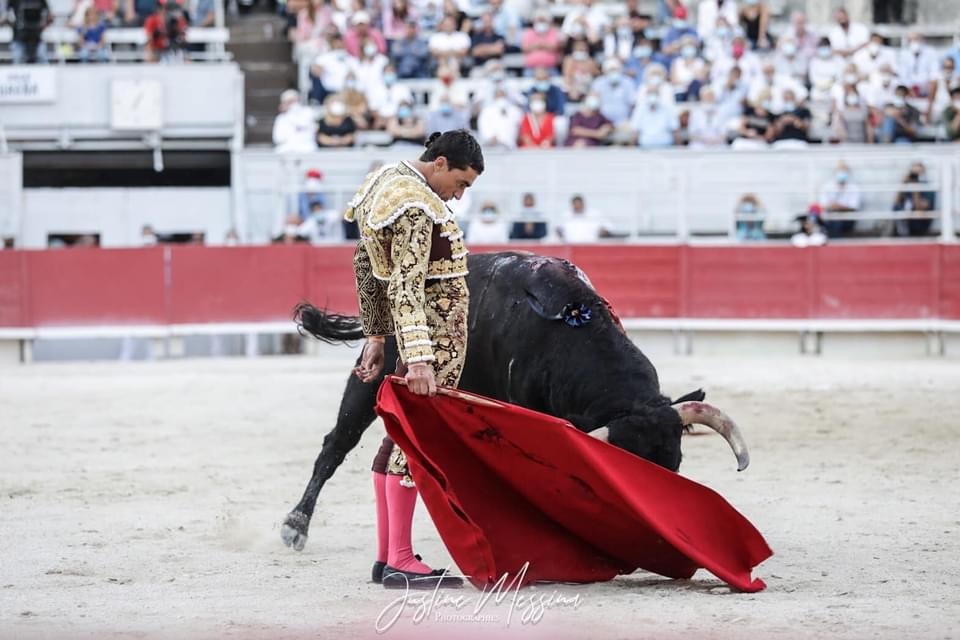 Paco Ureña regresaba al singular coso francés tras cinco años de ausencia. Con un vestido de estreno, rioja y oro, obsequio de la Casa de la Rioja en Madrid por ser el triunfador de la feria de San Isidro 2019, el de Lorca dejó su sello de clase y verdad en el ruedo del anfiteatro.
