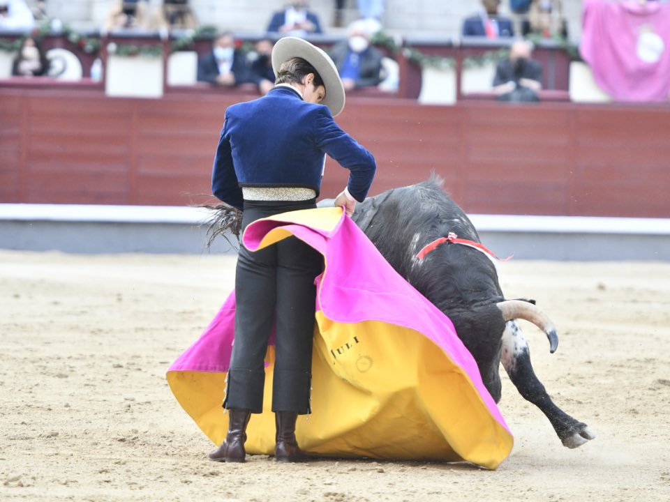 El rejoneador Diego Ventura abrió la tarde en triunfo. La plaza de Madrid se olvidó de la seriedad y el rigor, y premió al caballero con dos orejas tras una faena con pocos errores que brindó a Isabel Díaz Ayuso. Ventura ofreció buena doma y extremada facilidad. El toro de Capea fue un perita en dulce y Diego, como la figura del rejoneo actual, le sacó el mejor partido. Los quiebros ajustados y las piruetas gustaron a la concurrencia que no dudó el pedir las orejas cuando percibió que el intérprete del arte de marialba había acertado con el rejón de muerte al primer intento.