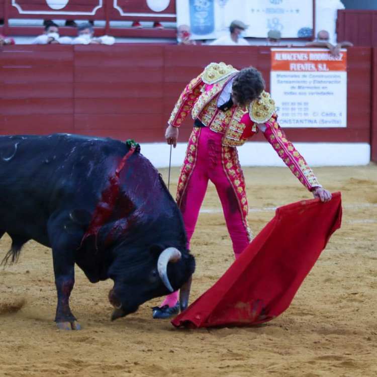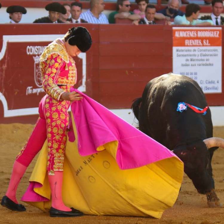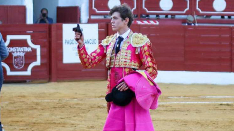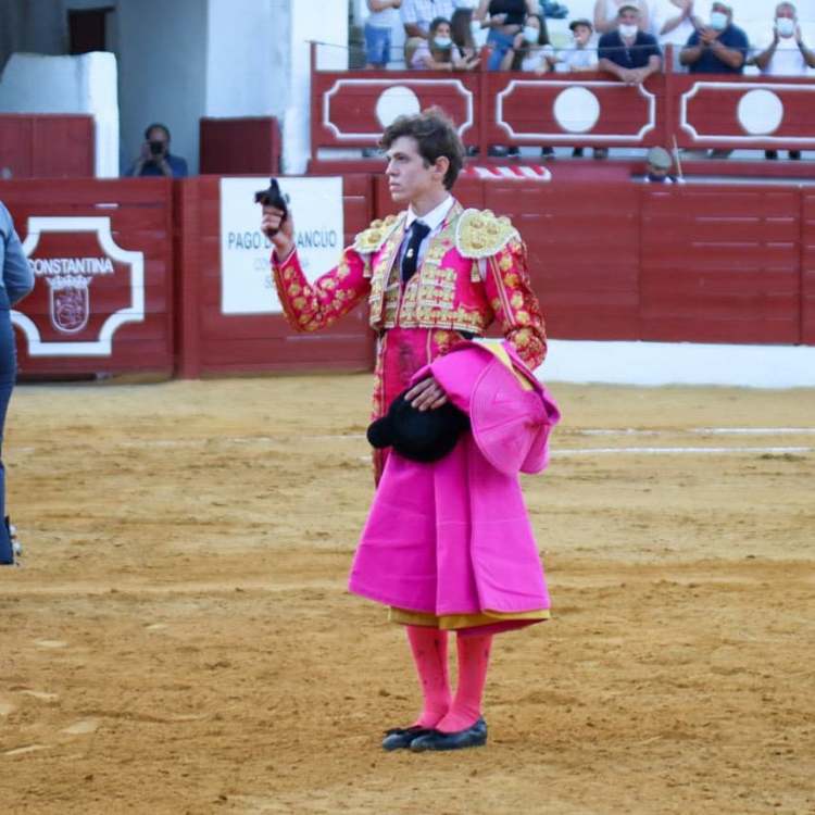 Constantina (Sevilla), sábado 26 de junio de 2021. II Semifinal del Circuito de Novilladas de Andalucía. Novillos de La Palmosilla (1º, 2º y 3º) y El Parralejo (4º, 5º y 6º). Pablo Páez, oreja y oreja; Jorge Martínez, ovación con saludos tras aviso y oreja tras aviso; Manuel Perera, dos orejas y dos orejas.