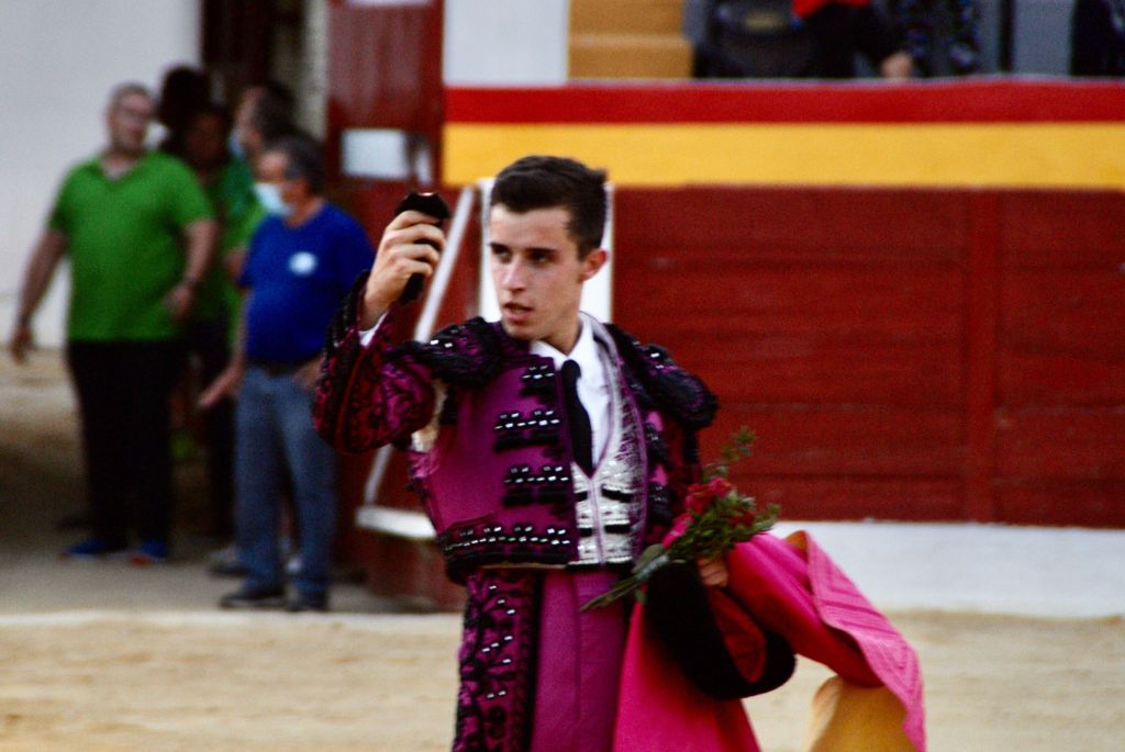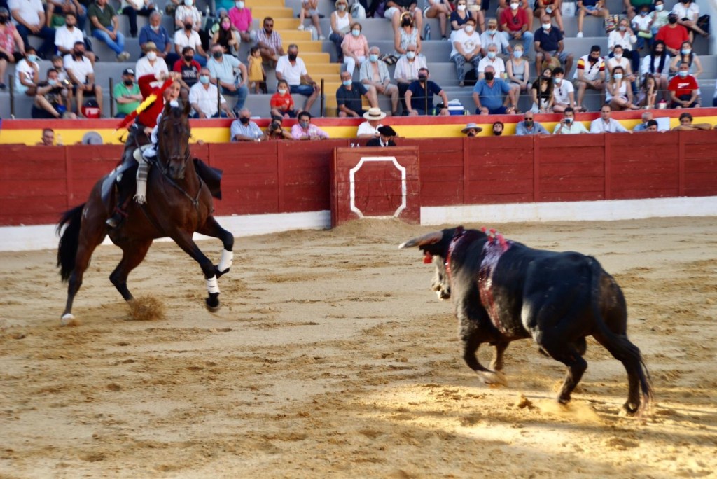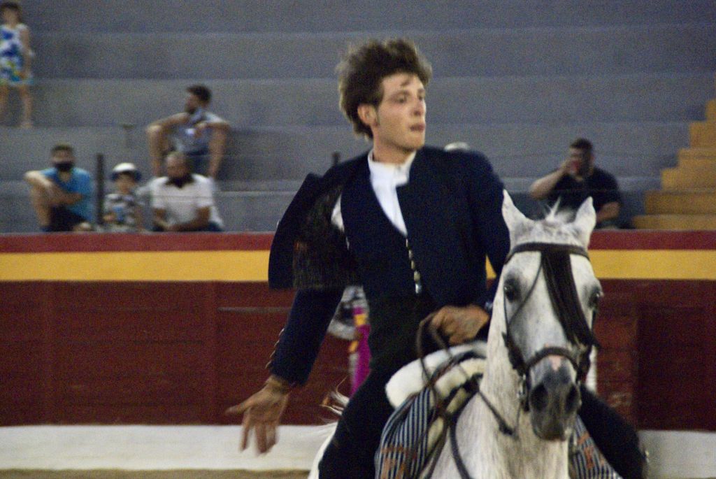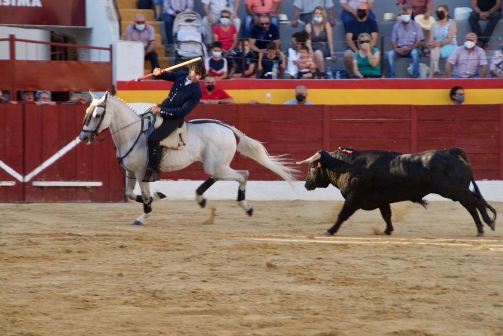 Con los nervios aparcados después del debut, el pachequero Felipe Alcaraz mostró su mejor versión con el quinto. Arrollador desde el primer momento, paró con elegancia, clavó acertadamente los rejones de castigo y realizó una faena notable que fue a más. Muy apoyado por la legión de seguidores que acudieron hasta Yecla para ver su presentación, el rejoneador dejó las banderillas arriba, dándole el pecho de los caballos al novillo, dejando claro que lo suyo no va de broma y que va a por todas para labrarse un futuro en el arte de Marialba. Lamentablemente, manejó otra vez deficientemente la hoja de peral, aunque eso no fue un impedimento para el triunfo ya que se le concedieron las dos orejas.