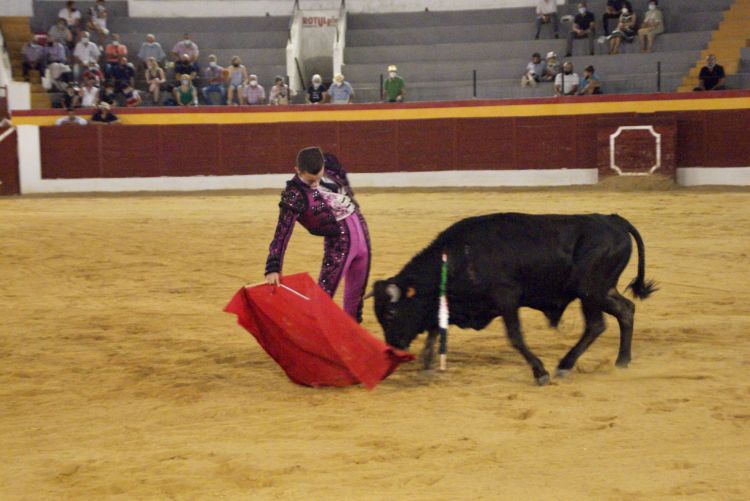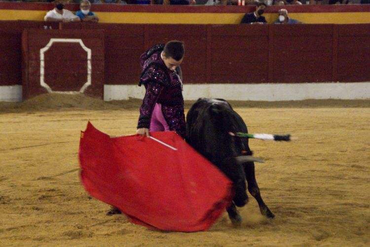 El yeclano Pedro Navarro debutó de luces ante sus paisanos mostrando sus ganas de querer ser torero. Fuera de la disciplina de la escuela taurina de Murcia el chaval trata de seguir el buen camino para llegar a conseguir su sueño de ser alguien en esta difícil profesión. Tuvo muy buena predisposición con capote, lanceando bien a la verónica, como con muleta, donde consiguió dar tandas buenas a un colaborador y terciado eral de Eugenio Frías. Lógicamente, tiene mil defectos que corregir, pero si sigue con la actitud mostrada y consigue evolucionar cada día, tendrá más cerca el sueño que persigue. Mató al segundo intento y paseó un apéndice.