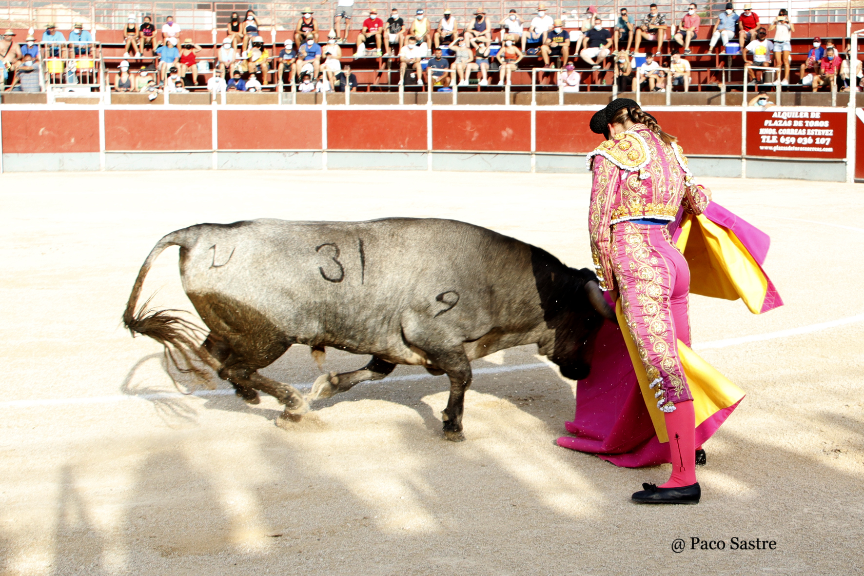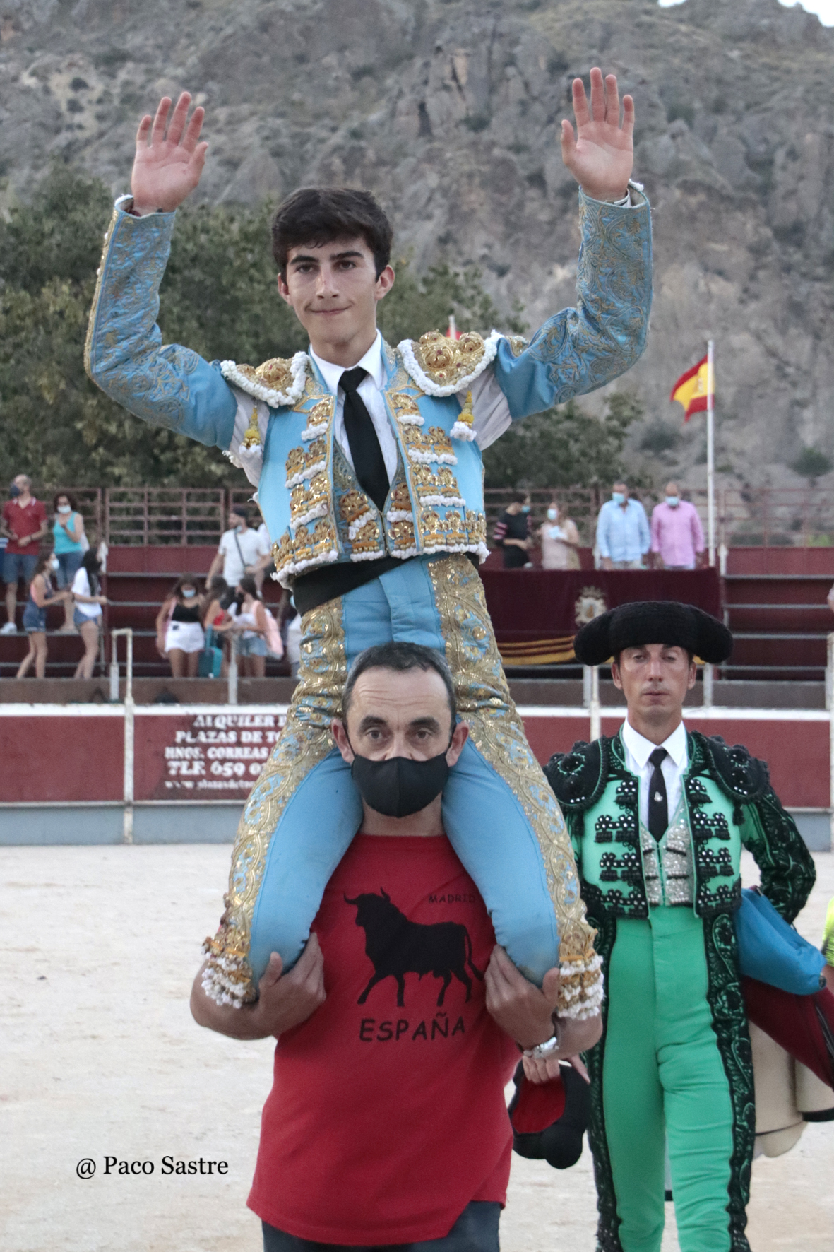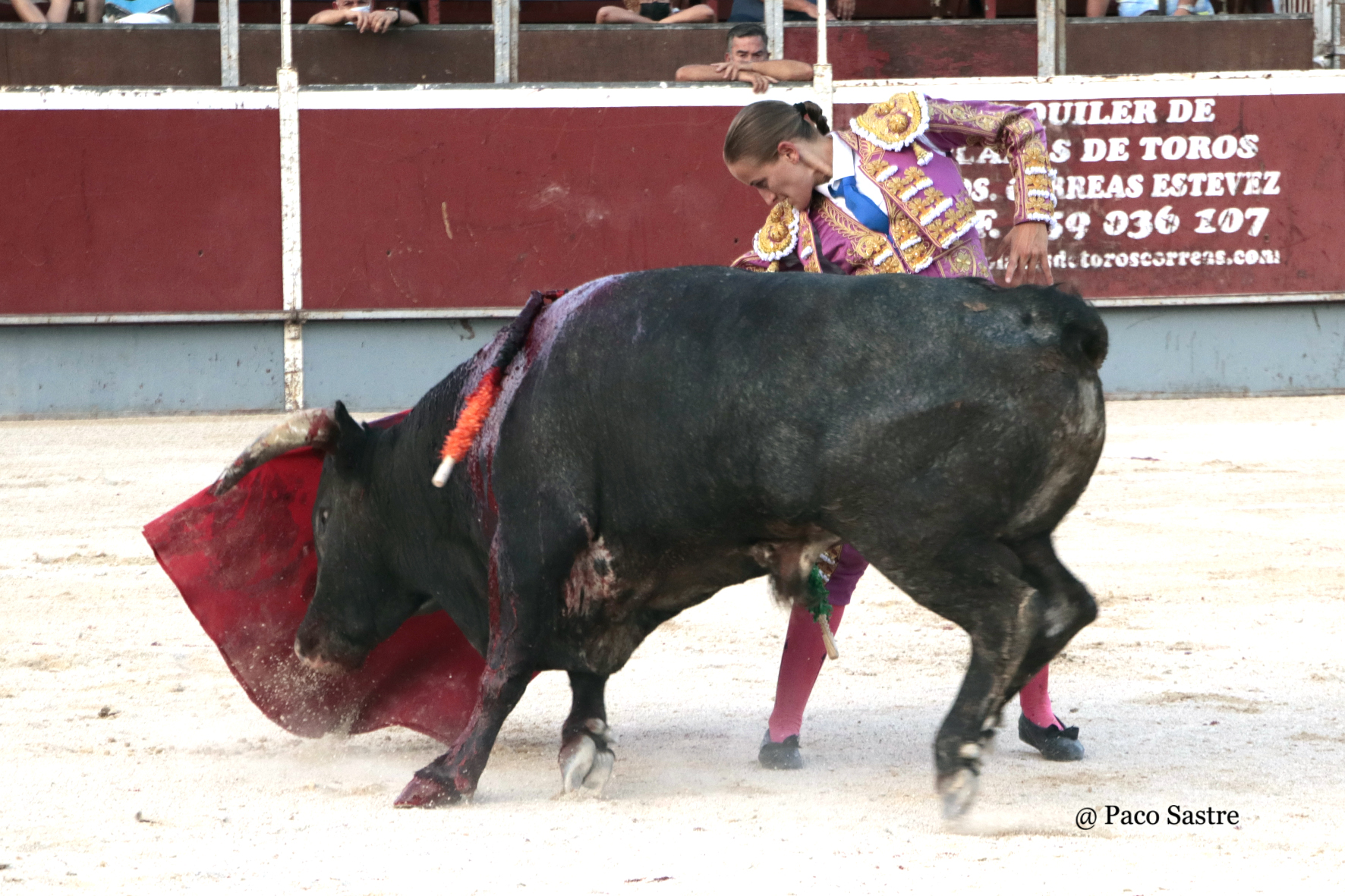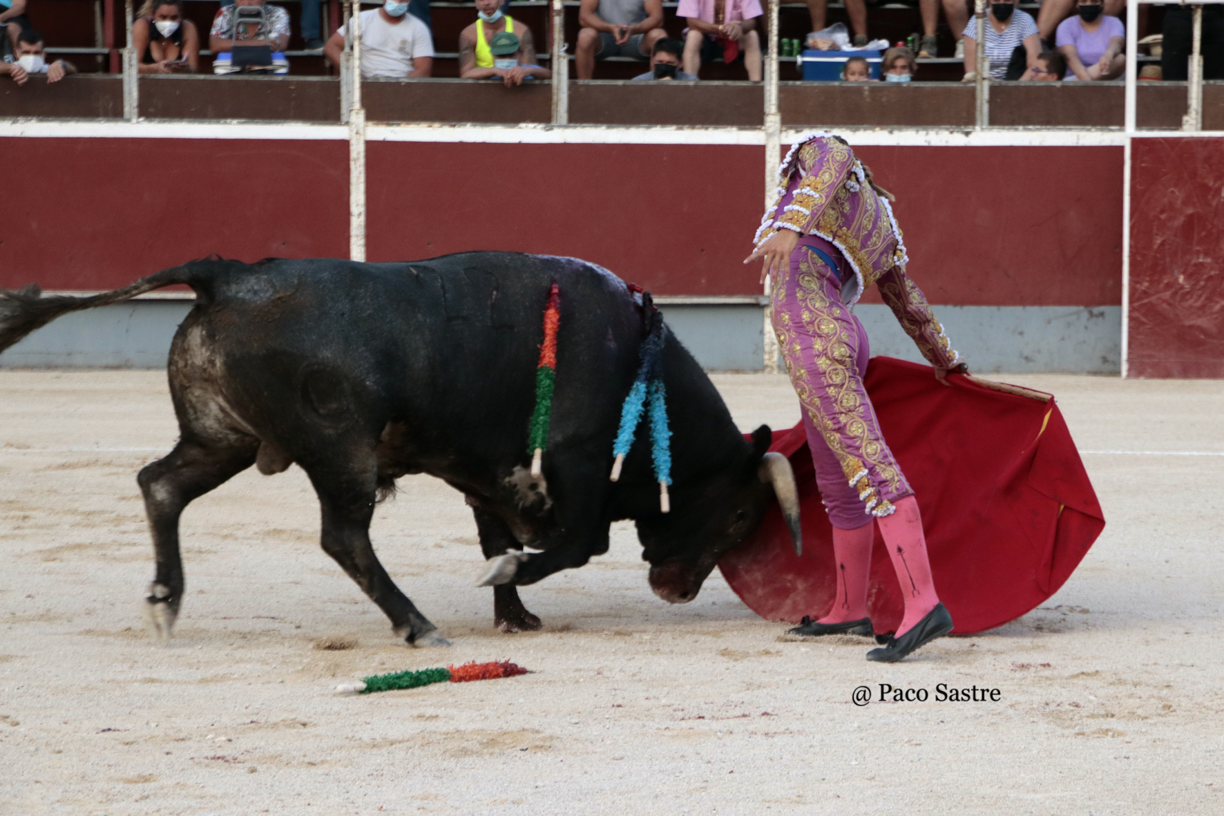 Torear, lo que se dice torear de verdad, pues más bien poco, esforzado eso sí, pero del montón. Lo que le distingue es la fuerza arrolladora de saber conquistar a los públicos. Garra, coraje, y lo que es importante cuando un novillero empieza, ¡¡Orejas!!.