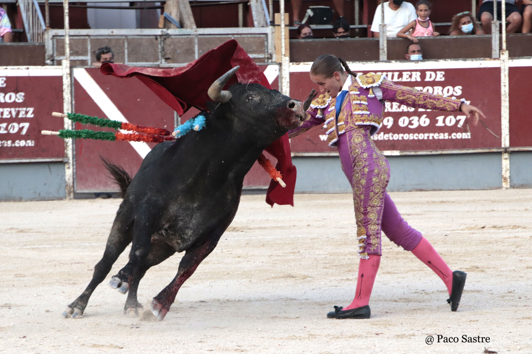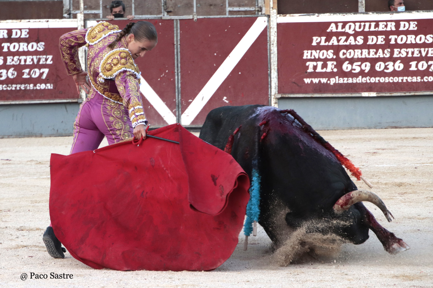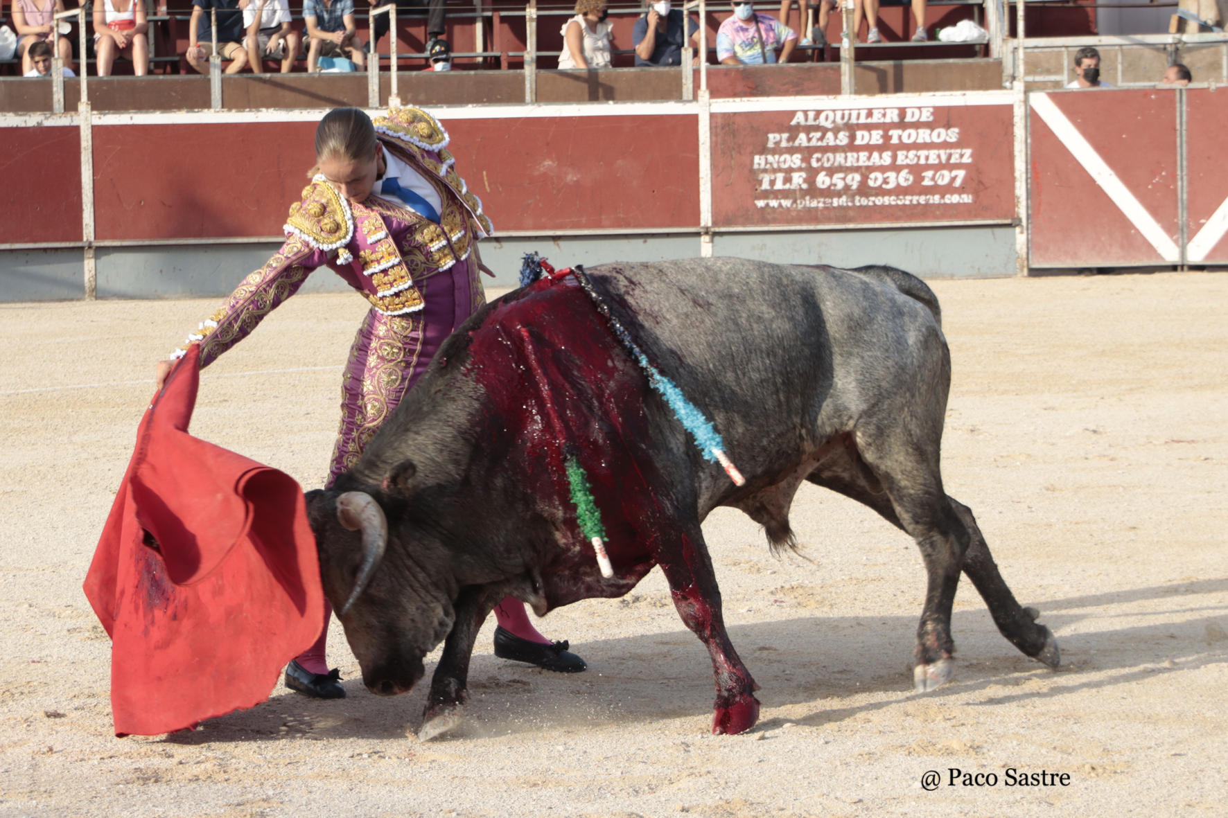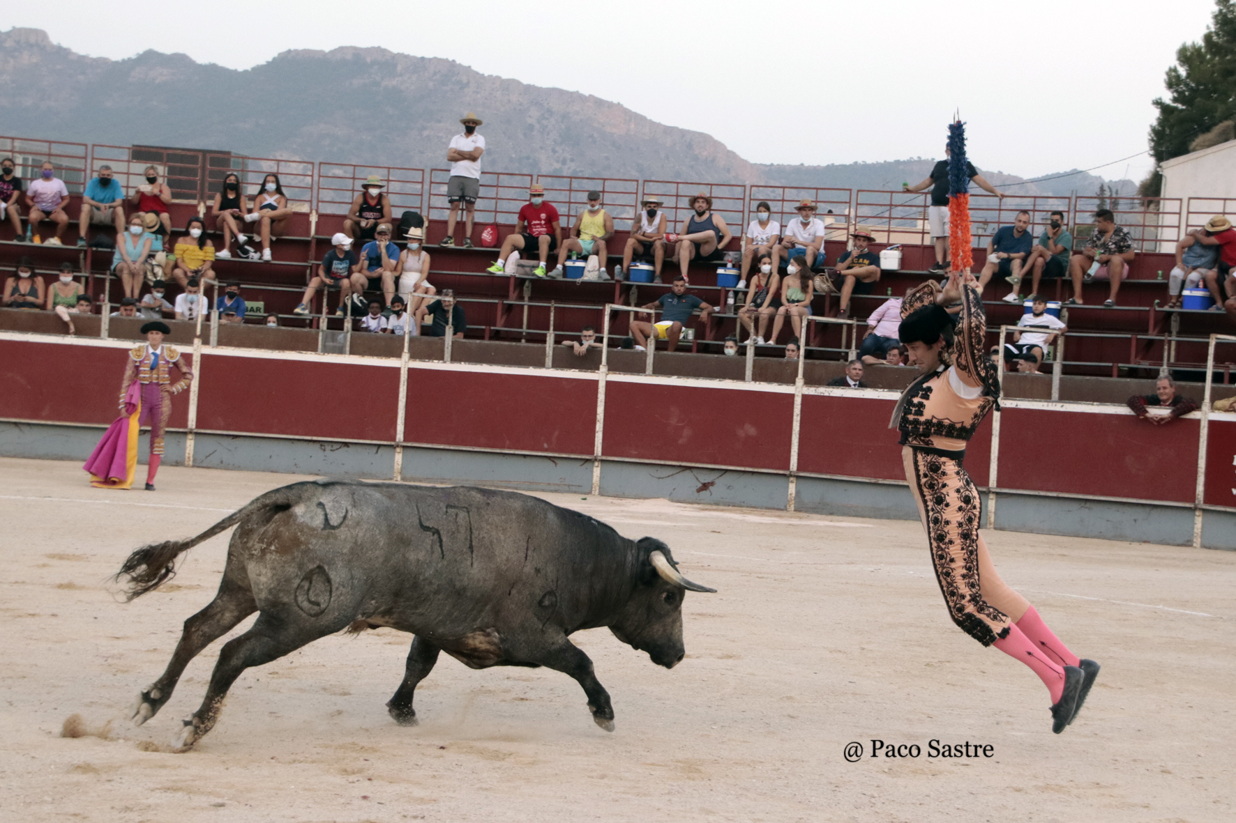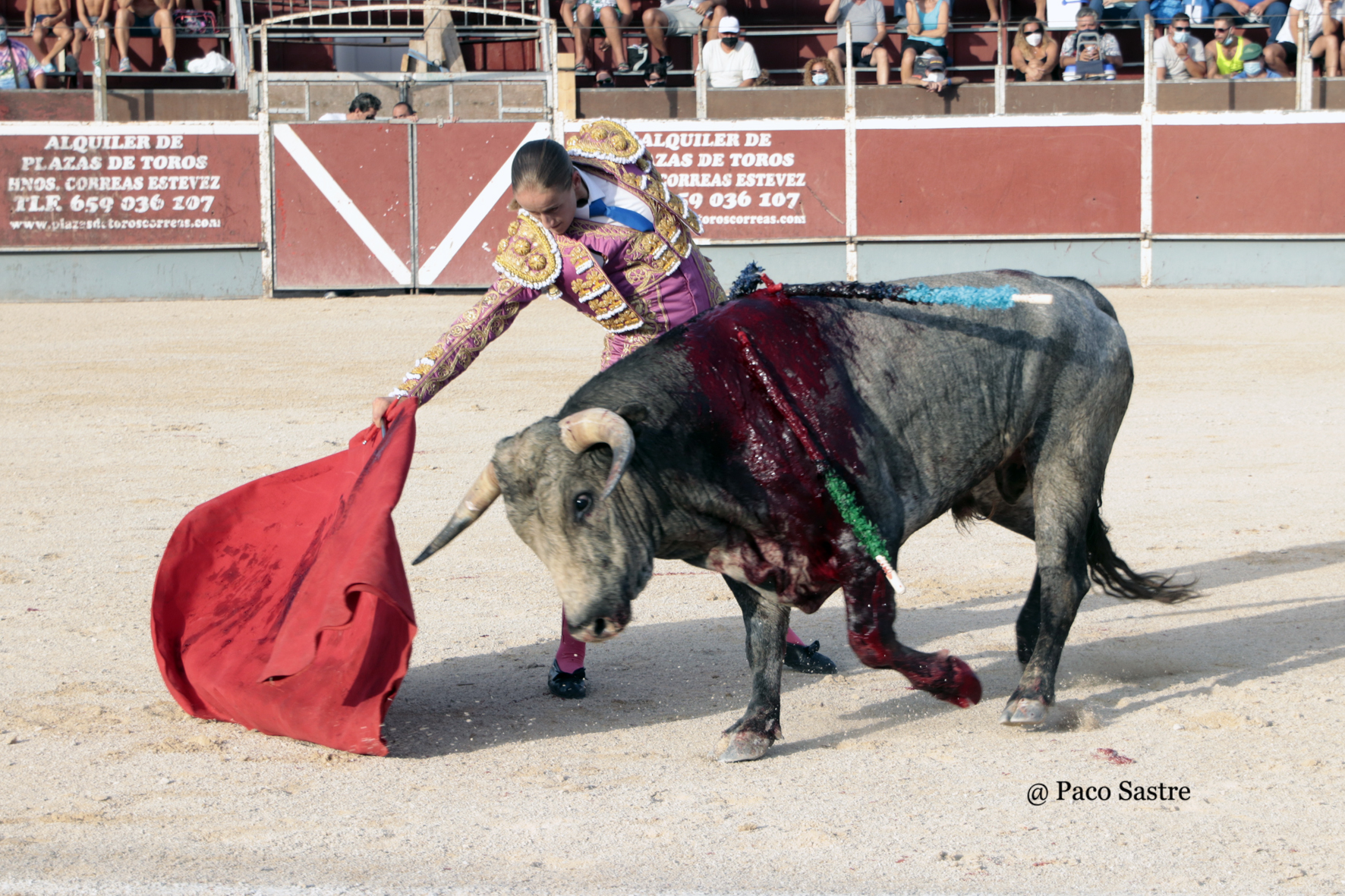 Torear, lo que se dice torear de verdad, pues más bien poco, esforzado eso sí, pero del montón. Lo que le distingue es la fuerza arrolladora de saber conquistar a los públicos. Garra, coraje, y lo que es importante cuando un novillero empieza, ¡¡Orejas!!.