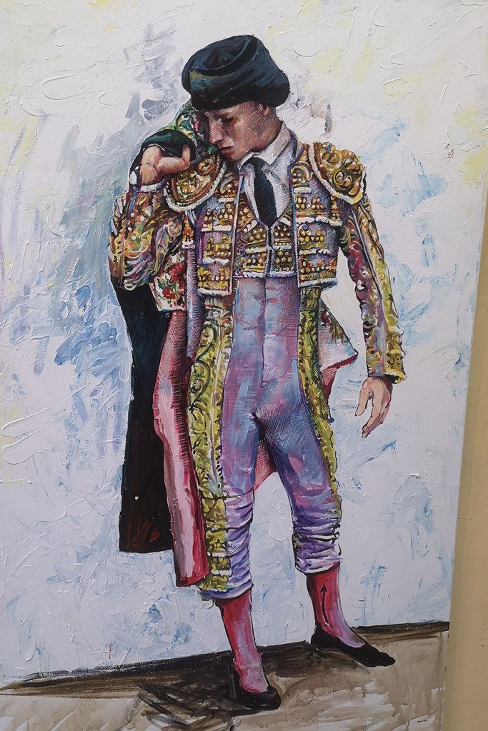 La exposición titulada “Arte, torero y toro” se compone de más de una treintena de cuadros y dos panderetas realizadas con técnicas tan variadas como carboncillo, acrílico, bolígrafo sobre papel, óleo y rotulador. De la exposición, en la que destaca la figura del torero y del toro de manera individualizada, y que podrá ser visitada en las instalaciones del Real Club Taurino de Murcia -restaurante y museo- hasta el próximo 15 de octubre, destacan los retratos que las artistas ha creado inspirándose en el novillero murciano José María Trigueros, quien ha posado para las pintoras en varias sesiones para esta exposición.