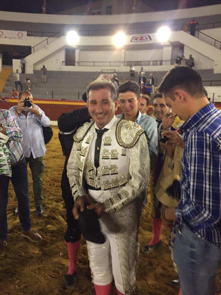 Regresaba a los ruedos españoles el matador toros murciano Emilio Serna. Sorteó en primer lugar, un toro negro listón muy bien presentado que fue ovacionado de salida. Tras pelear discretamente en el peto, se cambió el tercio con solo tres palos. Inicia la faena de muleta pegado a tablas pero el animal acusó falta de fuerzas echándose en el tercio. Serna le cambió los terrenos. Se vieron derechazos a media altura que sacaron las virtudes del toro. También naturales con la mano izquierda de mucha calidad, la faena fue de menos a más. Emilio Serna fue capaz de entender muy bien al animal, evitando que mostrase la evidente falta de fuerza manifiesta en los primeros compases de lidia. Faena de mucho oficio del de Las Torres, que terminó con un vistoso desplante de rodillas. Tras estocada entera y contraria ejecutada en la suerte natural, el toro se resistió a caer hasta el tercer descabello. Petición y oreja.