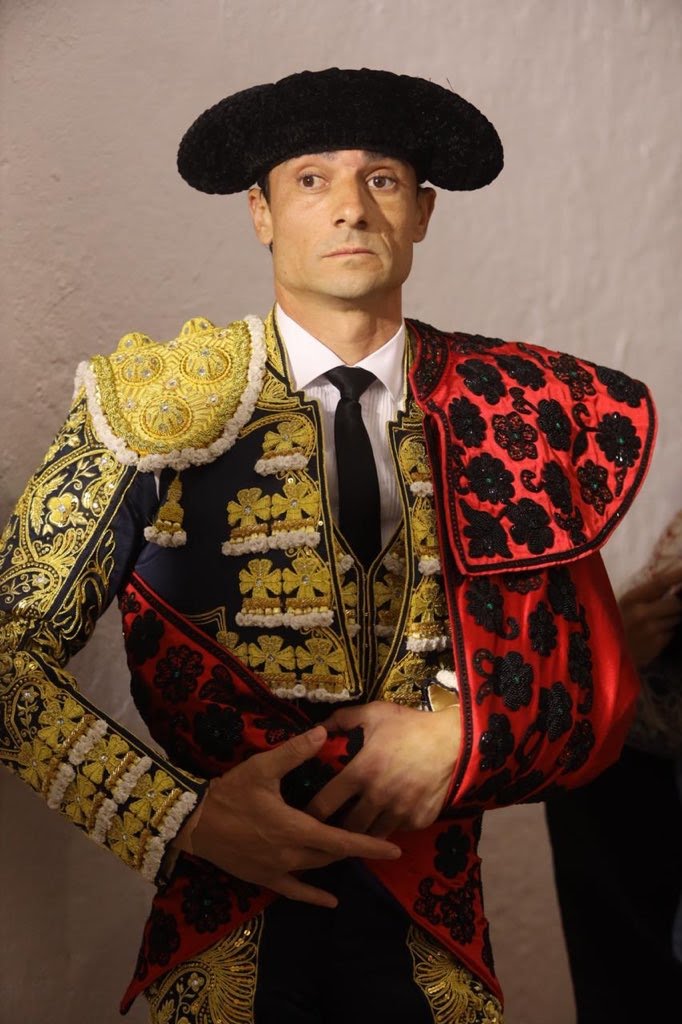 El lorquino sabía que uno de sus discípulos se presentaba con caballos hoy en la plaza de toros de la Real Maestranza de Caballería de Sevilla, y en lugar de solamente desearle suerte, va y le presta un vestido de torear.