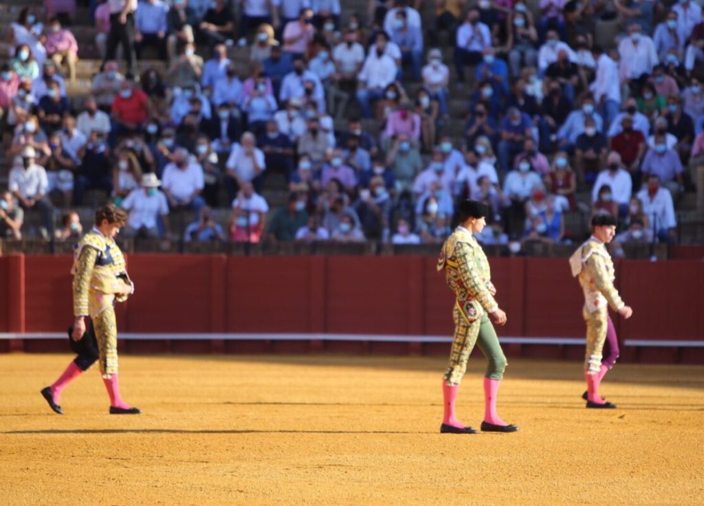 Plaza de toros de la Real Maestranza de Caballería de Sevilla. Novena de abono. Novillada con picadores. Menos de media entrada del aforo permitido.
