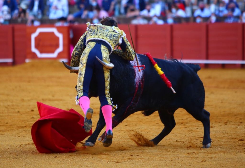 Tuvo nobleza y cierta templanza el quinto, un colorao de Rocío de la Cámara que tuvo la virtud de la humillación ya desde salida pero el cual se fue apagando como una velita. Utrero que empujó con clase al peto, pero que evidenció que el depósito de la casta no iba a estar sobrado. Inició Diosleguarde con un toreo en línea, a media altura, siempre buscando llevar al animal cosido con los vuelos. Todo lo quiere hacer despacio y muy pulseado, así es más fácil que los animales rompan. Pero duró un suspiro el astado. Bajó la persiana y con ello las ilusiones del salmantino. Se metió en los terrenos del toro con el colorao ya muy paradito, pero no hubo manera de conectar con el respetable.