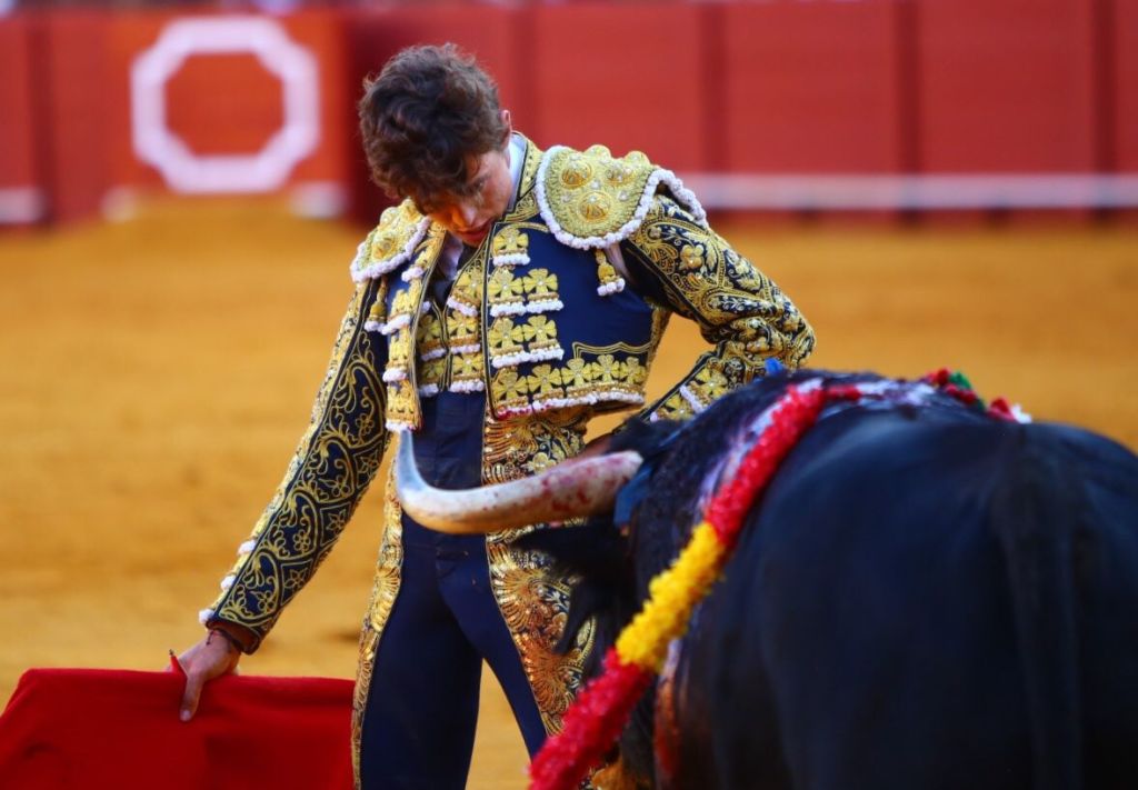 No tuvo opciones Calerito con el manso y desclasado primero. Un animal que ya desde salida evidenció su falta de gasta. De más a menos fue su pelea en el jaco, embistiendo andando en banderillas. Poco pudo hacer el sevillano salvo mostrar disposición ante un novillo que en el comienzo del trasteo embistió con pies, pero todo lo hizo a oleadas. Cuando perdió la movilidad tampoco dejó a Calerito ahormar faena. La falta de casta, unido a una embestida sosa y anodina no ayudó a que la faena cogiera vuelo. Novillo al que siempre había que llevar en línea recta y a su altura. Saludó una ovación desde el tercio tras tener que usar el verduguillo.