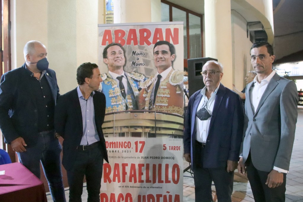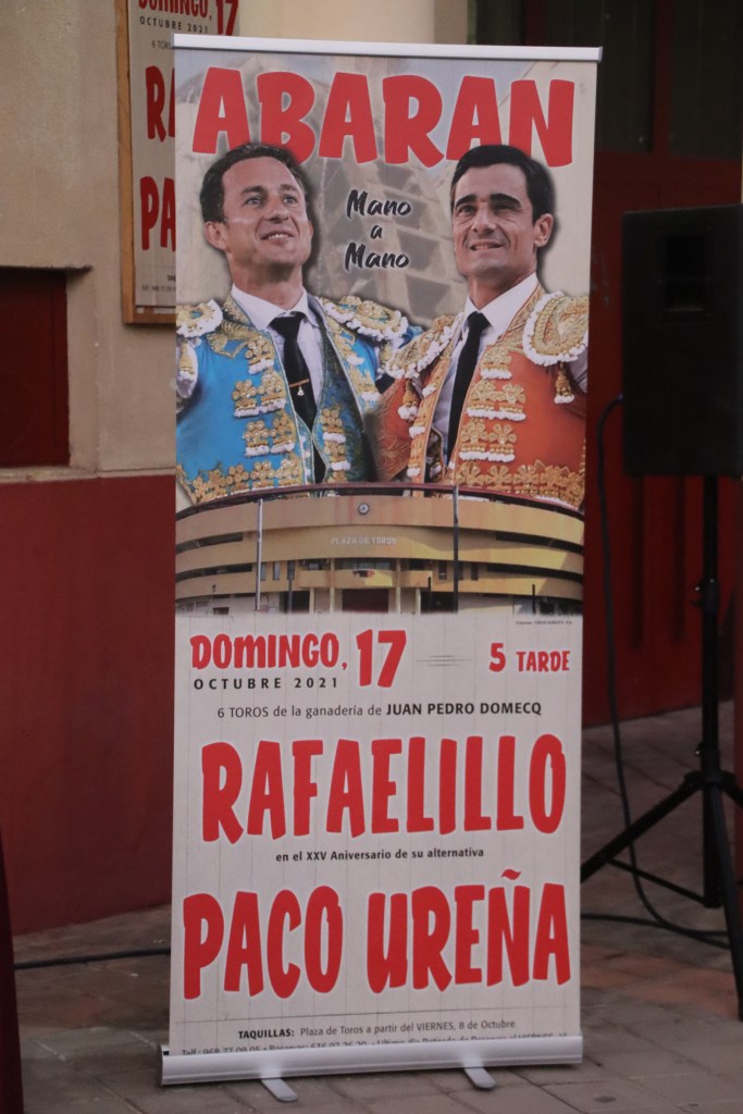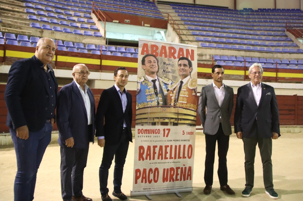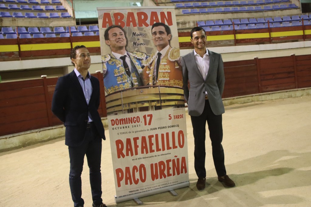 La explanada de la Plaza de Toros de Abarán acogió este miércoles la presentación de la corrida de toros que se celebrará en el coso de “La Era” el próximo 17 de octubre y que enfrentará en mano a mano a Rafael Rubio “Rafaelillo” y a Paco Ureña, con ganado de Juan Pedro Domecq.