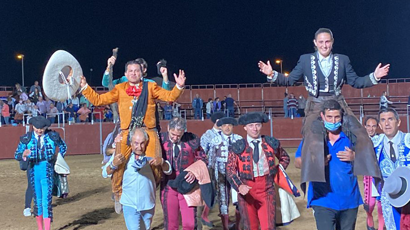 Rocío Arrogante abrió primero la puerta grande tras desorejar al segundo del festejo. Estuvo sublime en banderillas y se metió a la gente en el bolsillo por su manera entregada de torear a caballo. Al quinto también pudo cortarle las orejas pero no estuvo acertada con la hoja de peral. Dio una vuelta al ruedo por su cuenta.