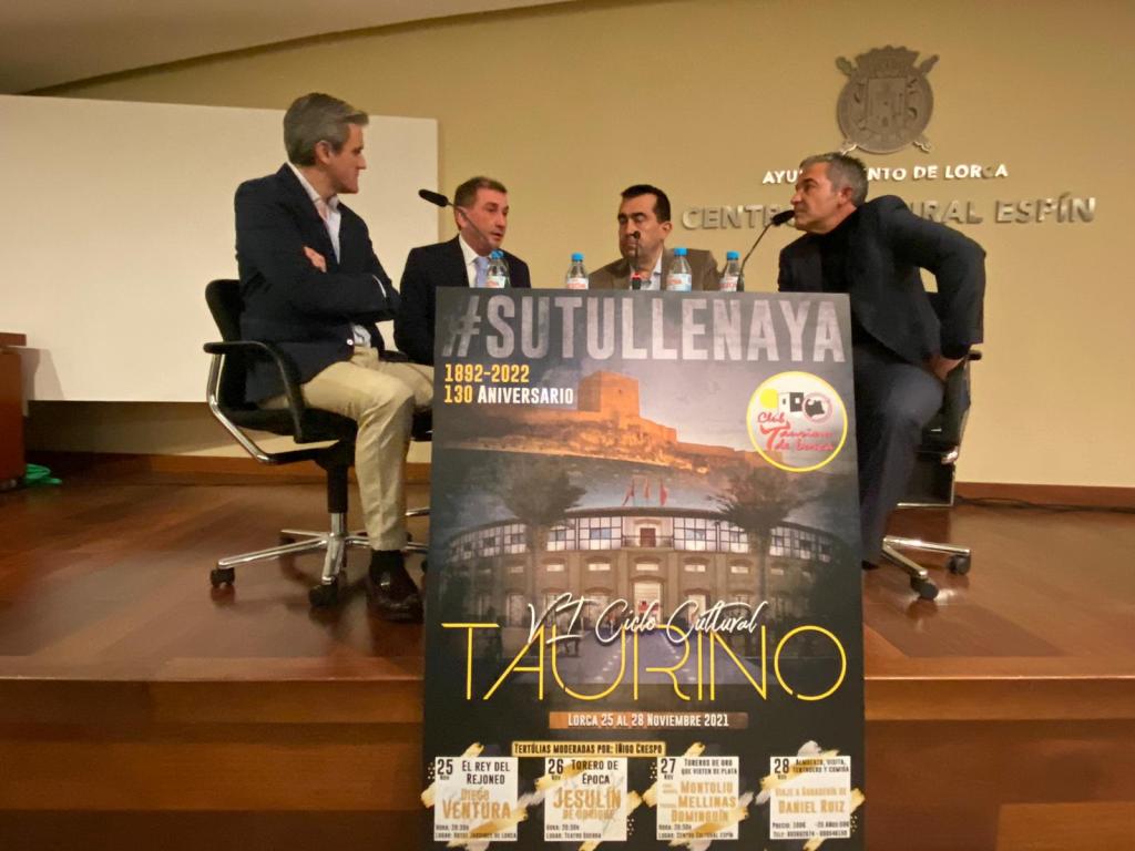 Los subalternos José Manuel Montoliu, Pascual Mellinas y Domingo García “Dominguín”, acompañados por el director de lidia de la charla, Iñigo Crespo, bregaron con la palabra, llevando largas y humilladas sus inquietudes y vivencias, y poniendo en todo lo alto sus sentimientos para el disfrute de los aficionados lorquinos que llenaron el aula del Centro Cultural Espín.