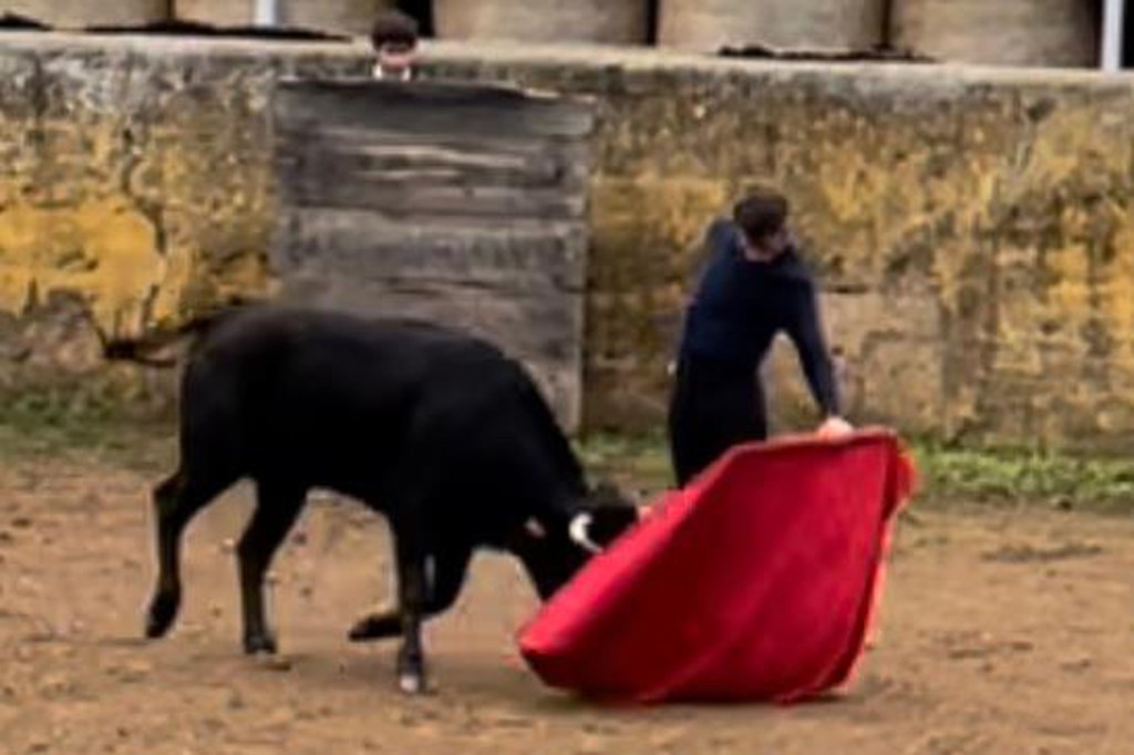 El novillero con picadores murciano José María Trigueros, acompañado de su apoderado, el maestro Alfonso Romero, ha tentado este sábado, 4 de diciembre, en la ganadería «Antonio Charrua» en Évora (Portugal), invitado por el ganadero Gustavo Charrua.