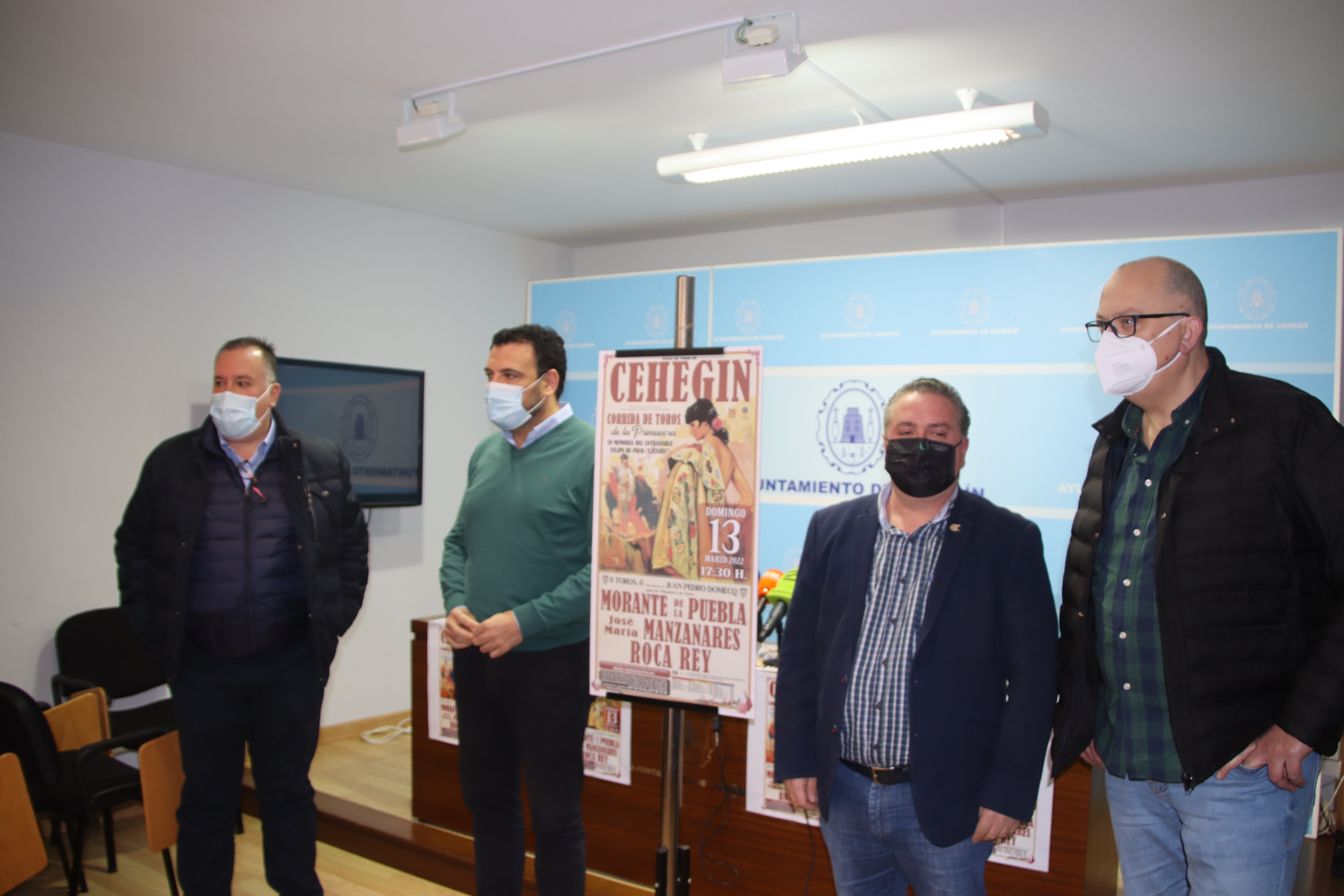 El Alcalde de Cehegín, Jerónimo Moya, y el Presidente del Club Taurino de Cehegín, Pedro Moreno, han presentado oficialmente la corrida de toros Extraordinaria de Primavera, que se celebrará el domingo, 13 de marzo a partir de las 17:30 horas, con un cartel que todos los presentes han coincidido en calificar “de lujo”, con Morante de la Puebla, José María Manzanares y Roca Rey. Los toros serán de “Juan Pedro Domecq”.