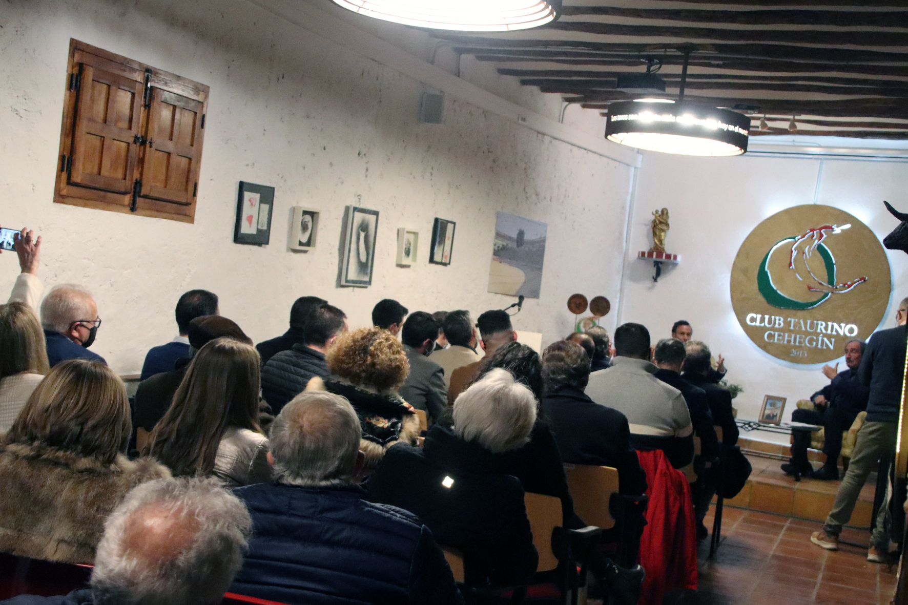 Entre los aficionados, pudimos ver al matador de toros local Antonio Puerta y a los toreros de plata Pascual Mellinas y Carlos Pacheco, en el evocador local con que cuenta el Club Taurino de Cehegín en los bajos de la plaza de toros, que se quedó pequeño para la ocasion.