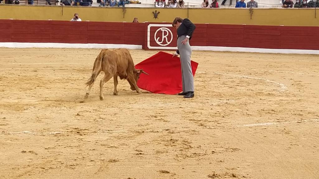 El sorteo realizado antes de comenzar la jornada ha encuadrado a dos novilleros por vaca. En primer lugar, han actuado Carla Otero y “Angelín”. Ambos han brillado delante de una vaca de extraordinario comportamiento. La alumna de la escuela de Guadalajara ha cuajado una sensacional actuación, llevando a la vaca larga, enroscándosela en la cintura y sacando muletazos de gran belleza. Por su parte, el de la escuela de Alicante se ha entregado, dejando una aguerrida actuación.