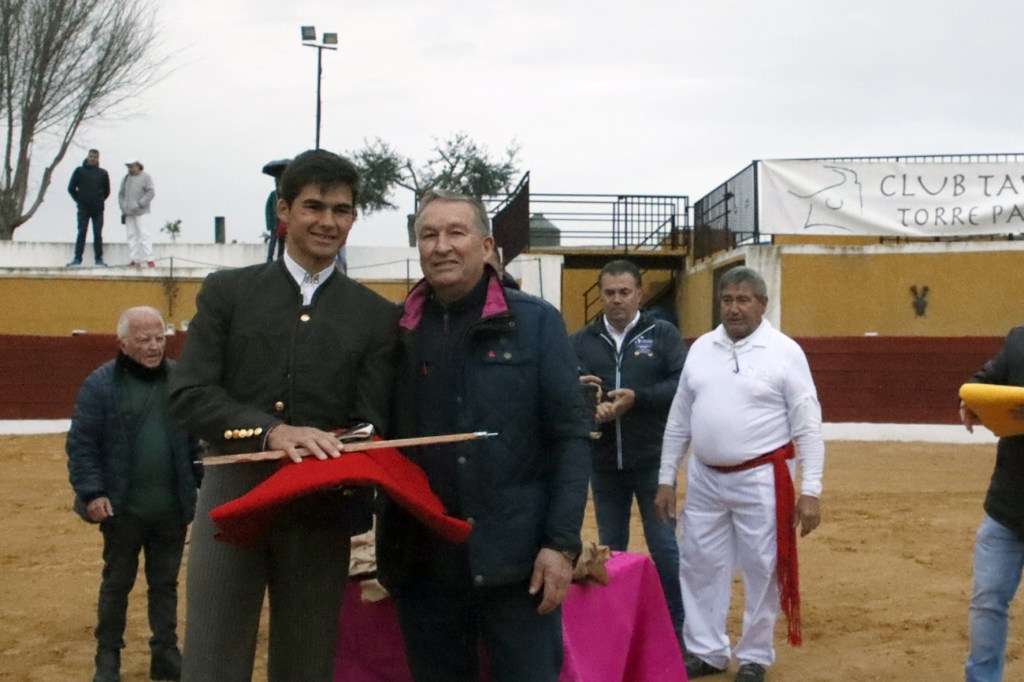 Además de entregar un recuerdo al maestro Alfonso Romero, al representante de la ganadería, Juan José Perucha, y a Francisco Abril, de la CARM, el Club Taurino de Torre Pacheco ha tenido una especial distinción con el crítico taurino Mariano Molina, de Televisión Murciana.