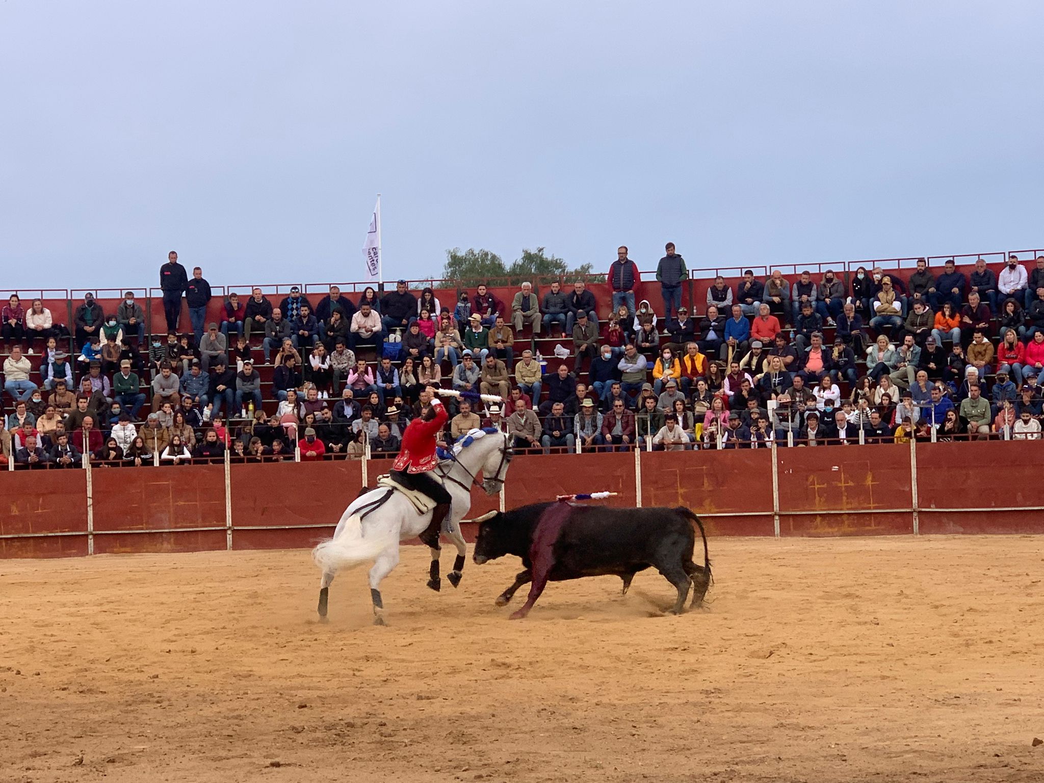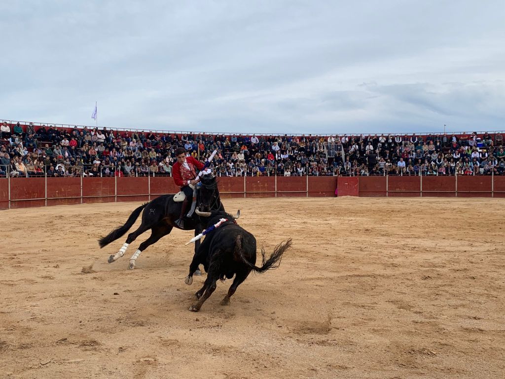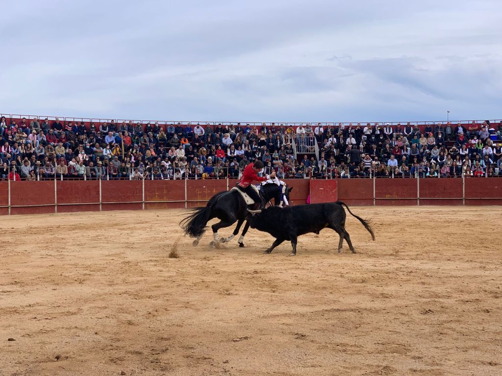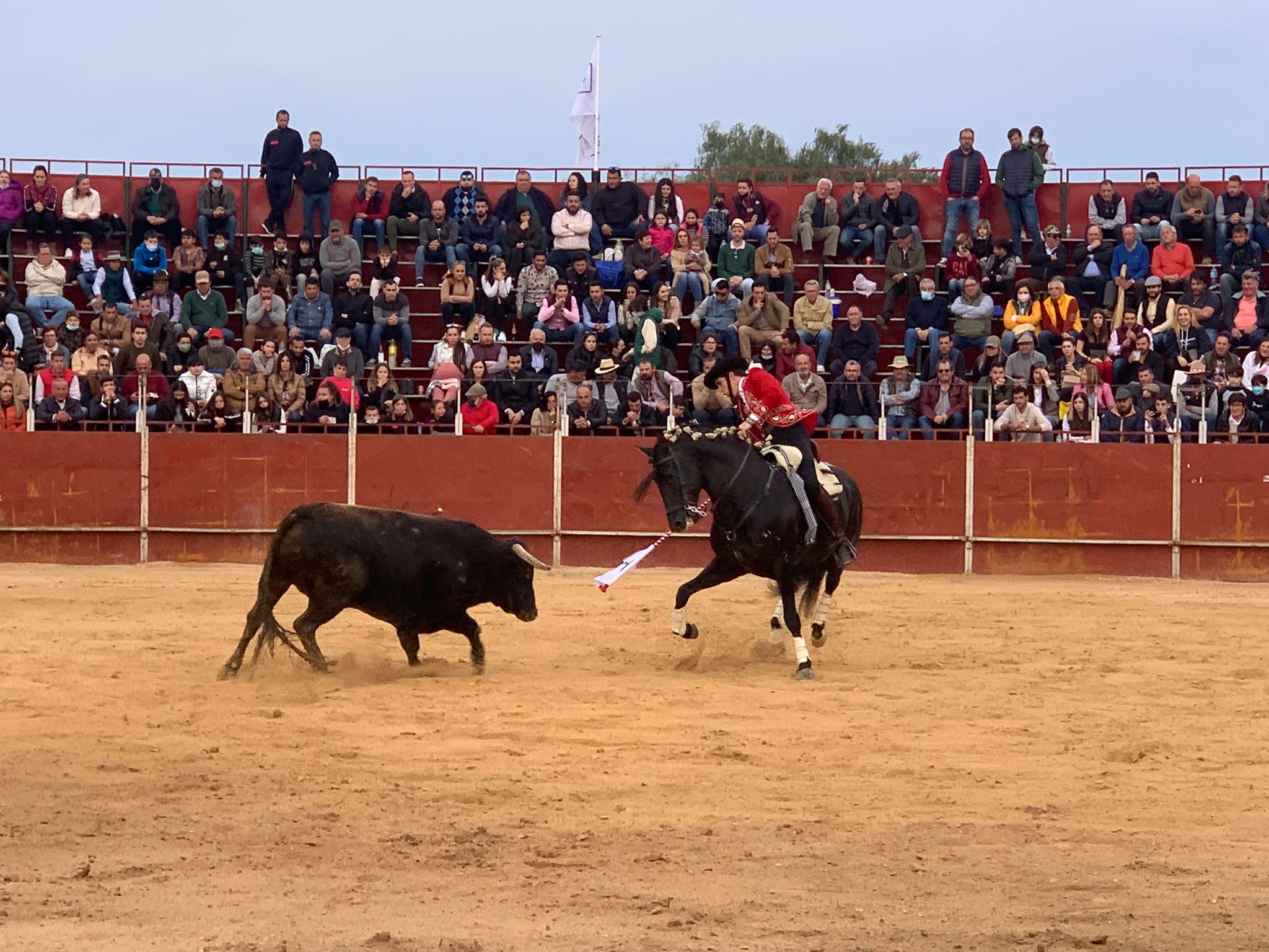 La plaza de toros portátil instalada en la pedanía cartagenera de La Palma acogió este domingo, 13 de marzo, una corrida de rejones en la que estaban acartelados los rejoneadores Andy Cartagena, Joao Moura Caetano y Guillermo Hermoso de Mendoza para enfrentarse a las reses portuguesas de los Hermanos Moura Caetano.