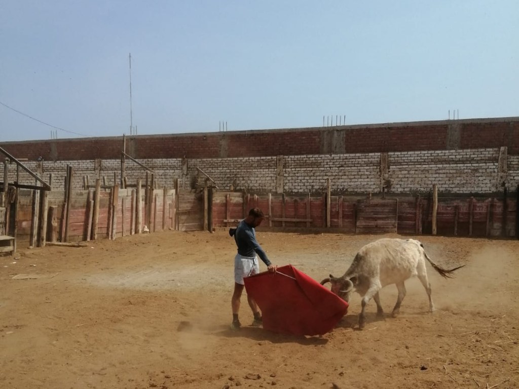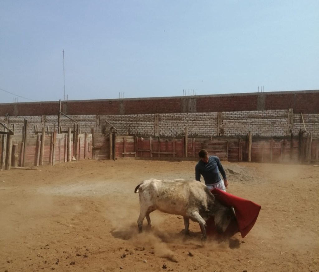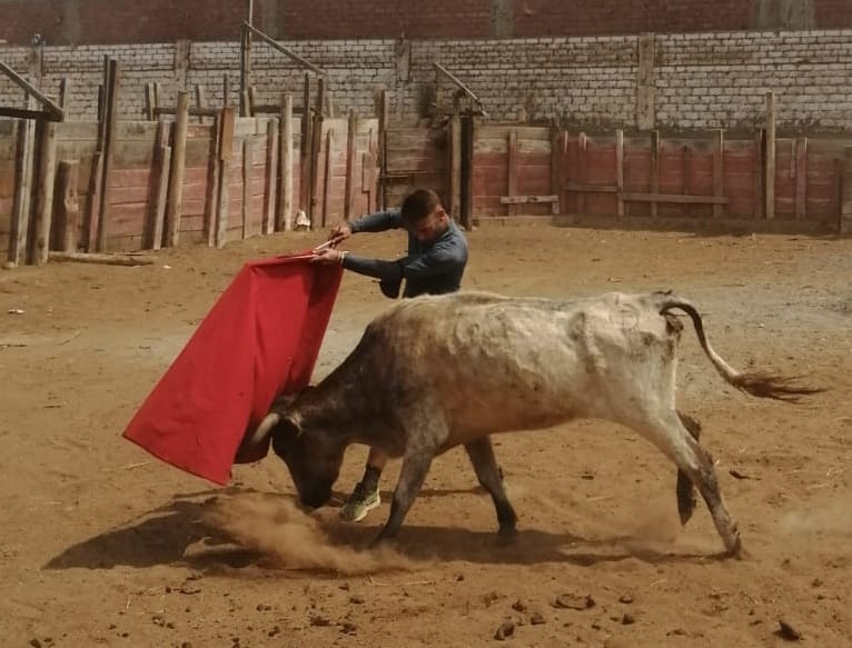“El Ciclón de Alquerías”, como ya lo conoce la afición de Perú, ya ha tenido su primer contacto con el ganado bravo. Fue algo fortuito, en una tarde de entrenamiento: “Estábamos en la finca practicando deporte y viendo los toros del festejo de mañana, y de repente se escapó una vaca. Ayudamos al ganadero a devolverla a su lugar, pero después me dio permiso para poder torearla”.