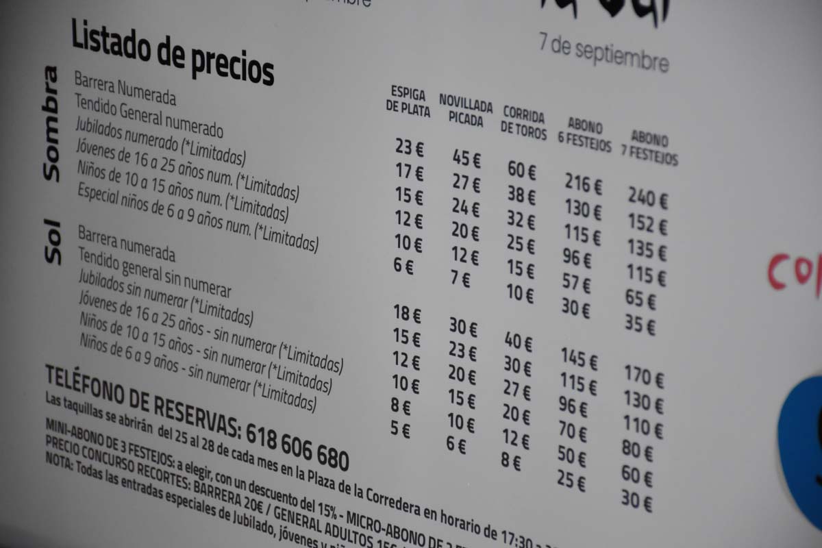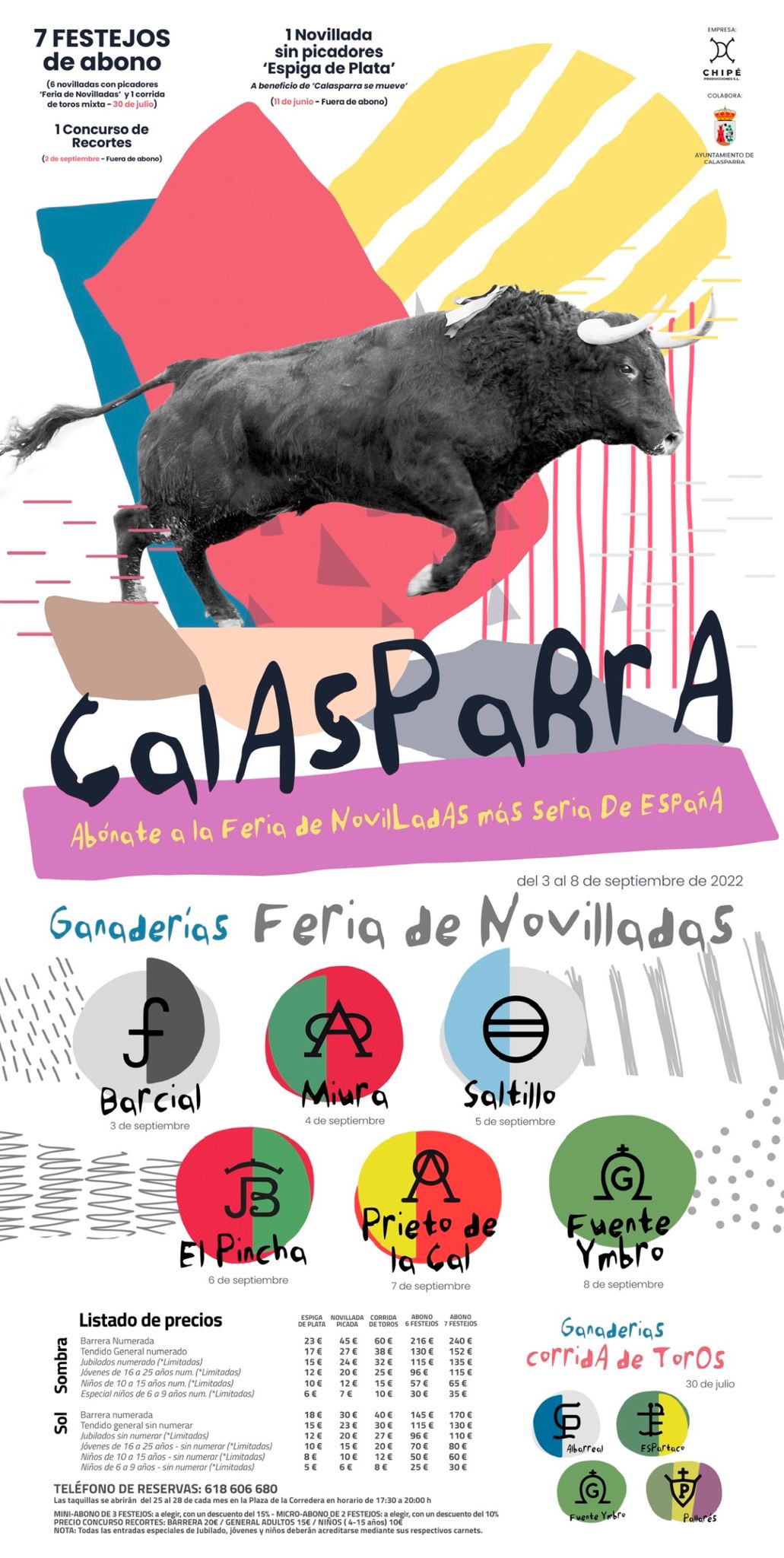 Asimismo, se vuelve a aplicar la posibilidad de pagar de forma aplazada el abono. Se aplicarán importantes descuentos a jóvenes y niños, así como a jubilados. Un abono de tendido de sombra para los siete festejos de la temporada cuesta 152 euros, lo que convierte a Calasparra en una de las plazas más económicas de España. También se permite la posibilidad de reservar un mi-abono de 3 festejos a elegir, y un micro-abono, de 2. Para más información sobre abonos y precios se han habilitado el teléfono 618 606 680.