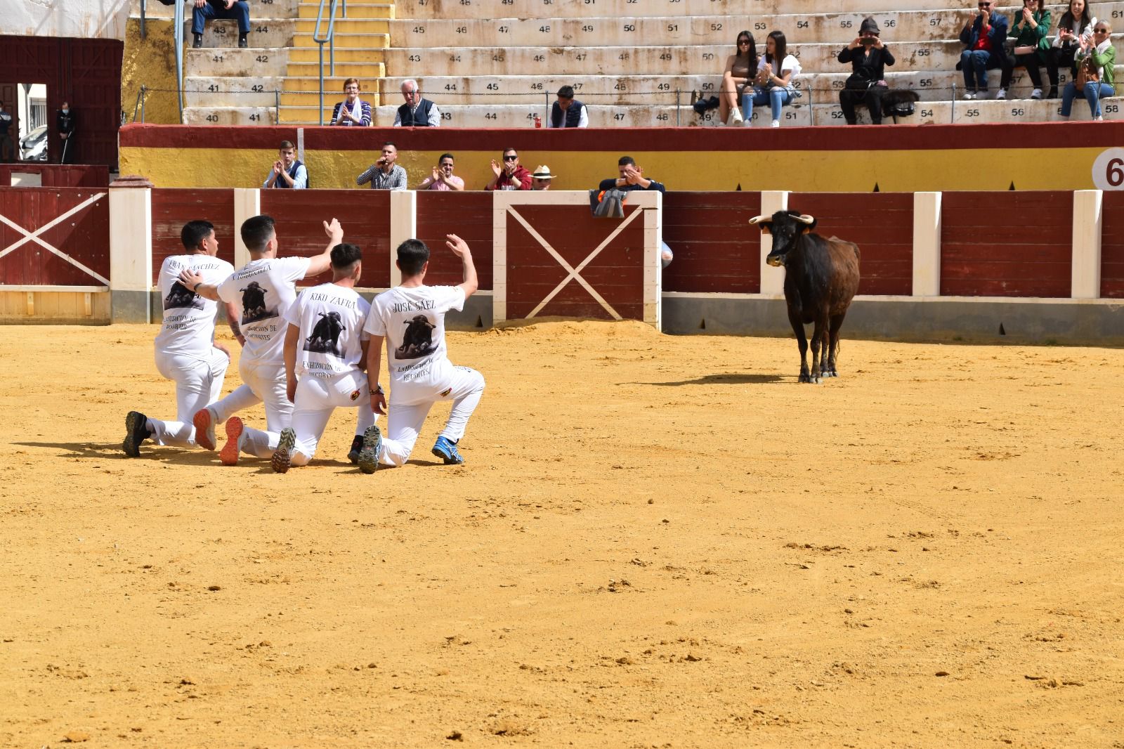 También hubo una exhibición de recortes en la que varios jóvenes murcianos que se están iniciando en esta variante de los festejos populares pudieron plasmar sus cortes, saltos y quiebros espectaculares.