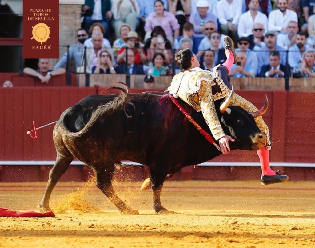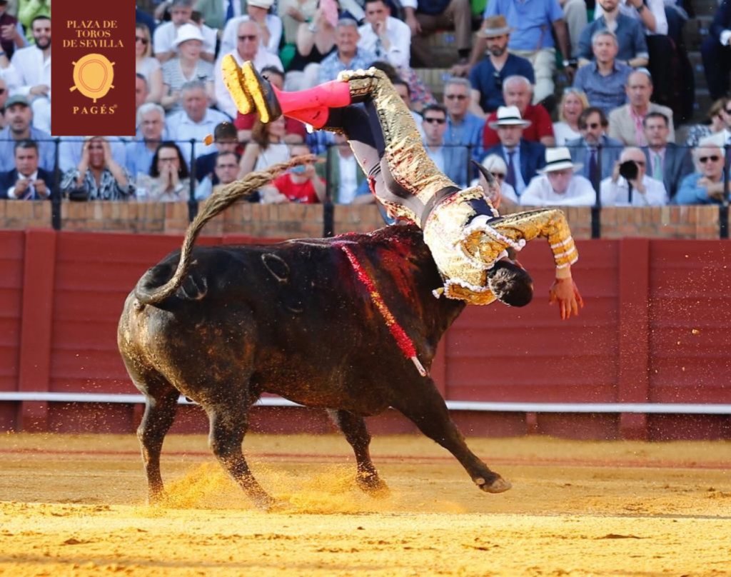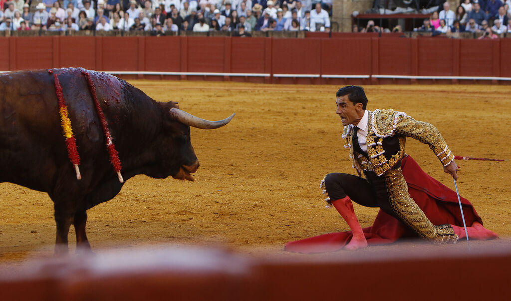 Ureña, que brindó la faena a Emilio de Justo, torero al que sustituía, inició el trasteo en terrenos de tablas, dándole ventajas al toro para que se confiara y entrara en la muleta. Lejos de eso, el animal le ofreció embestidas descompuestas y poco entregadas. Poco a poco el de Lorca fue labrando una labor que cogió algo de vuelo por el pitón derecho donde el de Matilla se le desplazó algo más. Puso firmeza y valor el de Lorca para sobreponerse a las circunstancias y terminó sacando algún natural de uno en uno, dando el pecho y poniendo sobre el rubio albero la pureza que tanto le caracteriza. En un descuido el toro se lo echó a los lomos de fea manera, librándose milagrosamente de la cornada. Volvió a la cara para terminar justificándose y el público se lo reconoció. Para rematar la labor dejó una serie de naturales con el compás abierto que coronaron la notable labor del lorquino. Sonó un aviso antes de que dejara una gran estocada arriba que ejecutó con rectitud. El toro tardó en caer, cuando lo hizo se levantó en el momento en el que el puntillero se disponía a atronarlo, sonó el segundo aviso. El toro cayó en el límite del tercer aviso. Sevilla le sacó a saludar una ovación.