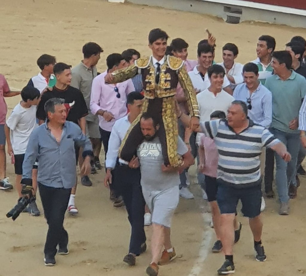 Dimensión enorme la que ofreció Manuel Caballero en el que cerraba la tarde, cuya muerte brindó a su hermano. Albacete tiene un torero, que desmostró que es capaz de aprovechar la buena condición del novillo ejecutando con brillantez el toreo fundamental, y también de tirar de bragueta cuando el animal se apagó. Acertó en la suerte suprema y le fueron pedidas unánimente y concedidas las dos orejas para llevarsela tarde ante la atenta mirada de dos toreros consagrados. Salió por la puerta grande escoltado por los alumnos de la Escuela Taurina de Albacete.