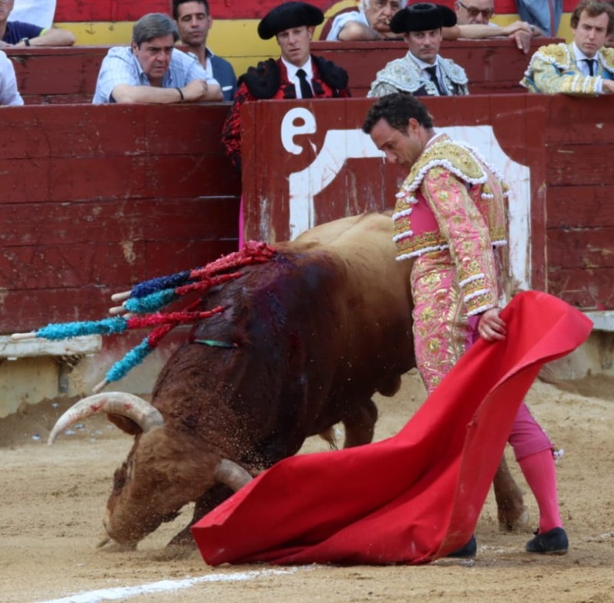 No comenzó bien la tarde al lesionarse el primer toro de Miura, de nombre “Bolillero” en el tercio de varas. Un fuerte encontronazo en el peto y un puyazo infame fueron el origen del fatal desenlace. Antes lo había recibido bien a la verónica “Rafaelillo”. La presidencia devolvió al animal y salió en su lugar un sobrero de la ganadería de “El Pilar”. “Sombreto”, colorado, de 507 Kilos, fue noble, pero le escasearon las fuerzas. “Rafaelillo” se afanó desde el principio dejando un buen recibo a un animal que de salida tuvo calidad y transmisión en su embestida. Dispuesto a todo brindó al respetable la faena en la que hubo voluntad, pero poca comunión con el tendido. Sin duda la falta de fuelle y fuerza del animal ayudó a que la mecha del trasteo no se prendiera pese a los intentos muy meritorios del torero murciano que dejó momentos de calidad por ambos pitones. Mató de estocada desprendida y saludó una ovación.