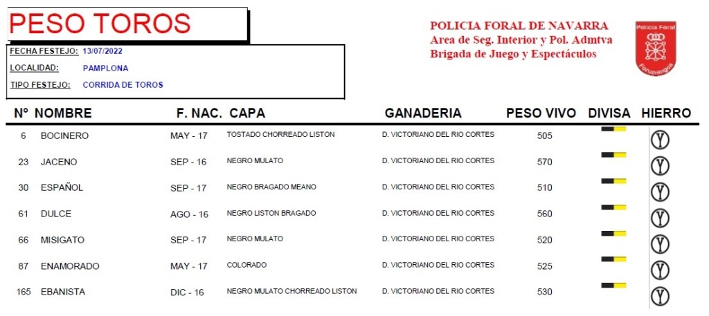 Estos son los toros reseñados: