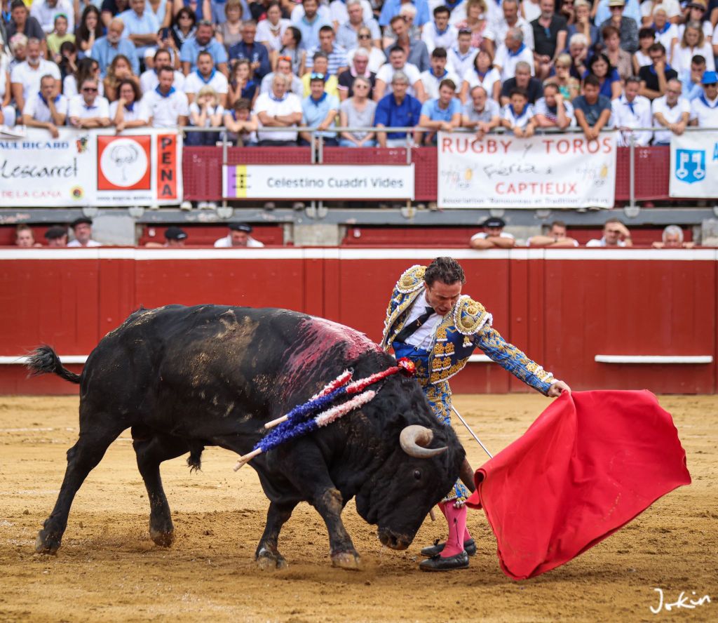 Importante fue la labor de “Rafaelillo” con el cuarto. El torero dio una lección magistral de valentía que intercaló con un toreo sentido y profundo que encandiló a los más exigentes aficionados franceses. El de Cuadri tuvo poder y transmisión y el murciano cuajó una redondísima faena. Todo el trasteo estuvo coronado por una enorme profundidad, tanto por el toro, exigente y vendiendo caras sus acometidas; como por el torero, que se sacó de esa enorme chistera de garrra y pundonor, un valor a prueba de bombas. Mont de Marsan se le entregó en una faena cumbre en la que además de estar soberbio por el pitón derecho pegó unas excelentes tandas de naturales. Mató de estocada entera, algo que desencadenó la petición de las dos orejas. El palco estuvo cicatero y tan solo concedió un trofeo. “Rafaelillo” fue obligado a dar dos vueltas al ruedo.