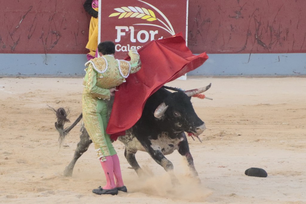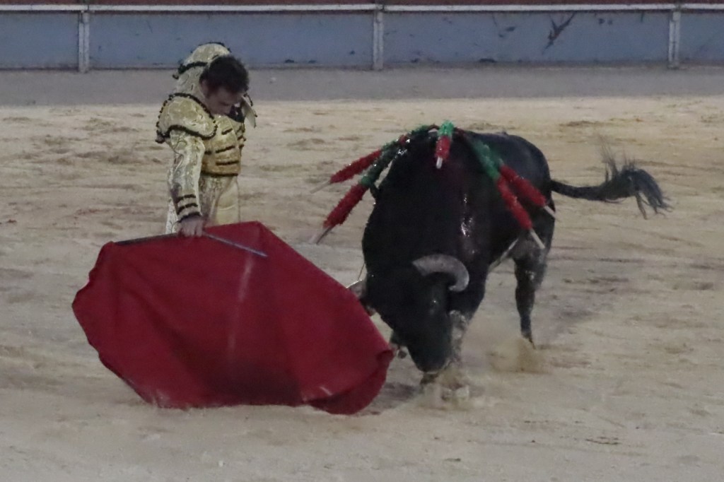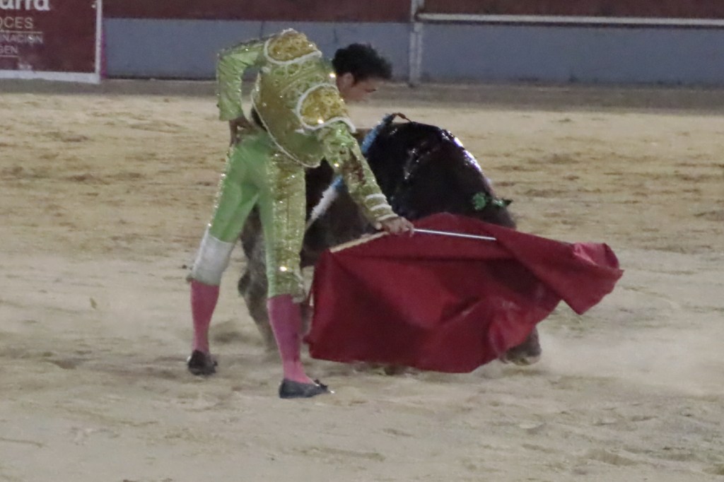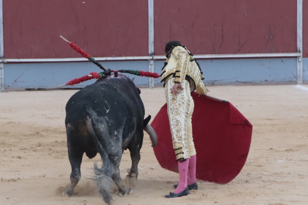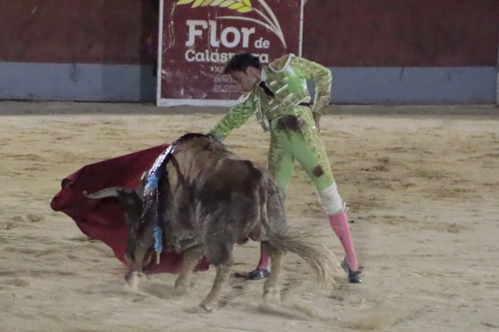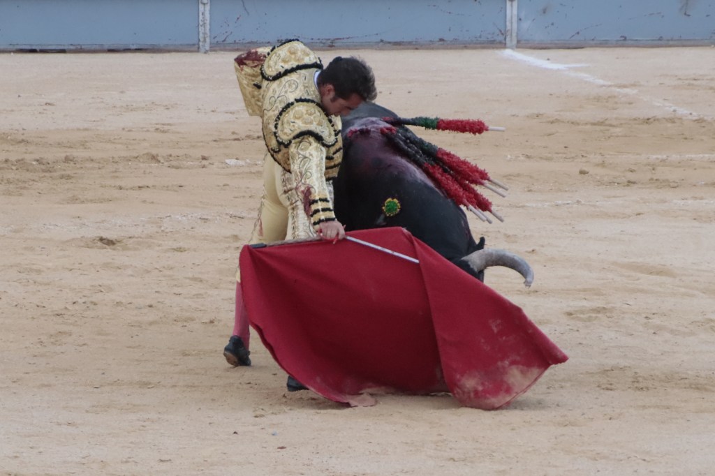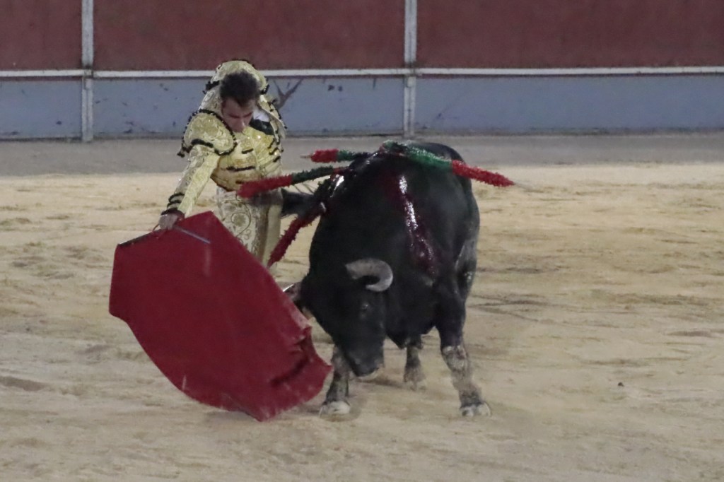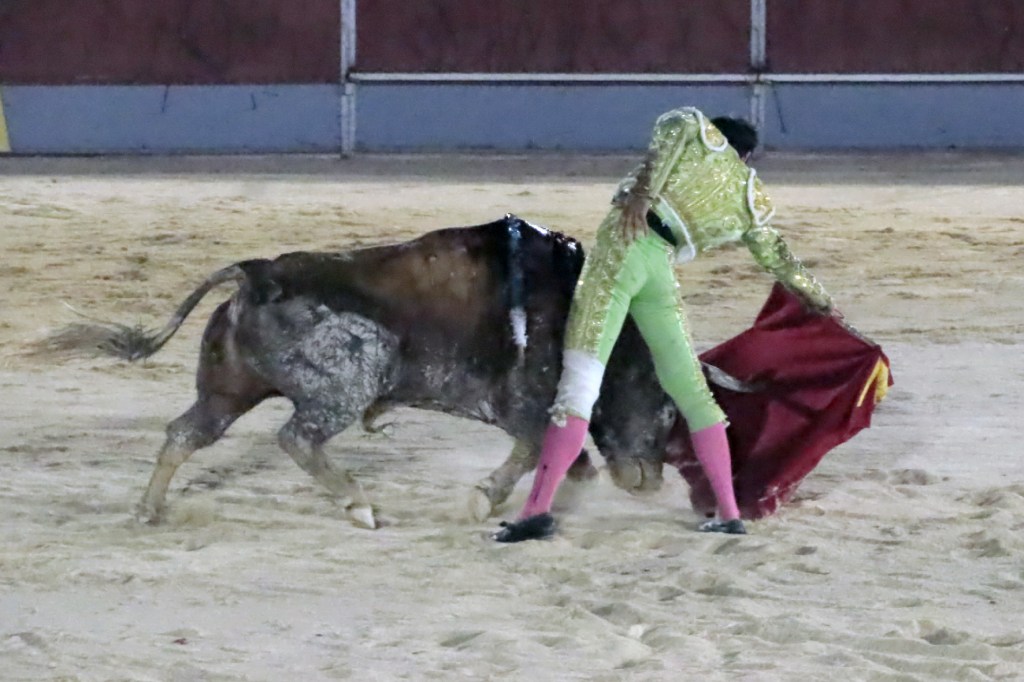 Salió de la enfermería Filiberto con un aparatoso vendaje a matar al toro de Fuente Ymbro que cerraba la tarde. En el primer lance con el capote, se pudo observar que se encontraba muy mermado de condiciones. Aun así, hizo un esfuerzo continuando la lidia, con un toro exigente que puso en apuros a la cuadrilla. Tras brindar la muerte del animal al maestro Espartaco, sin enmendarse y pese a estar mermado de condiciones y al viento, se fue al mismo centro del ruedo para propinar una impactante serie por el pitón derecho sin mover los pies del suelo. Lo intentó por el izquierdo, dándose cuenta que no podía cargar la suerte por esa pierna. Sin tiempo de nada más, el toro se vino abajo y se fue “a tablas”, echándose incluso tras un pinchazo. Tras levantarlo el puntillero, tuvo Filiberto que usar el descabello en varias ocasiones. La inoportuna puesta en marcha de la megafonía para anunciar los premios, dejó en “silencio” lo que merecía la ovación como reconocimiento al esfuerzo.