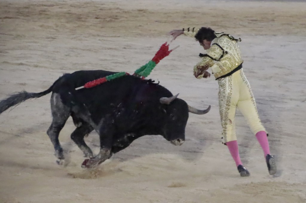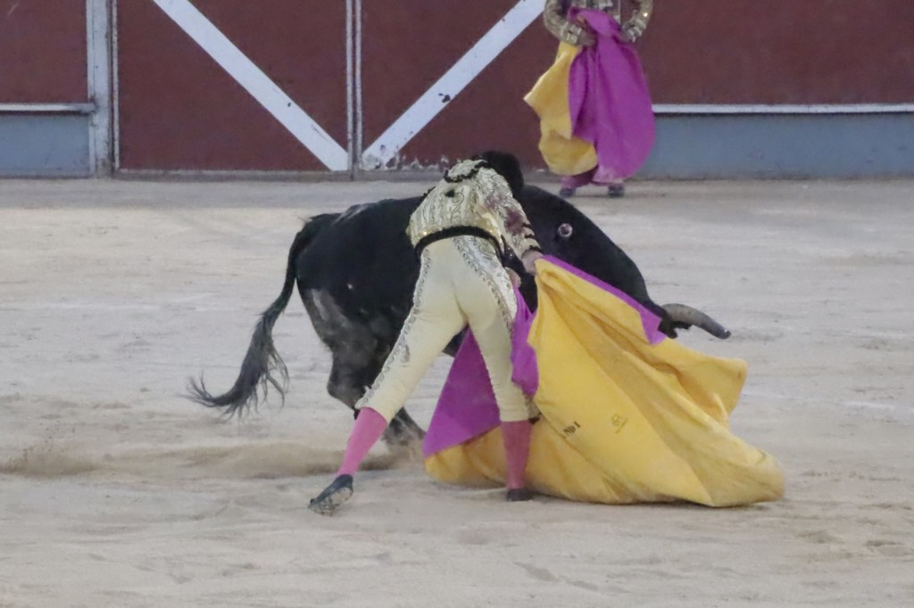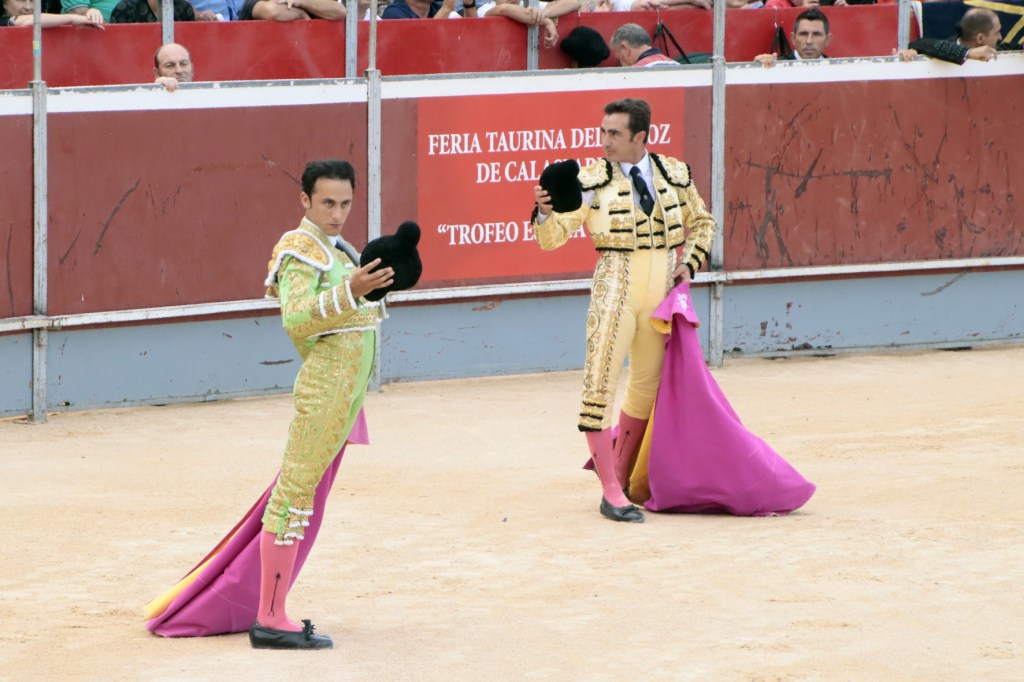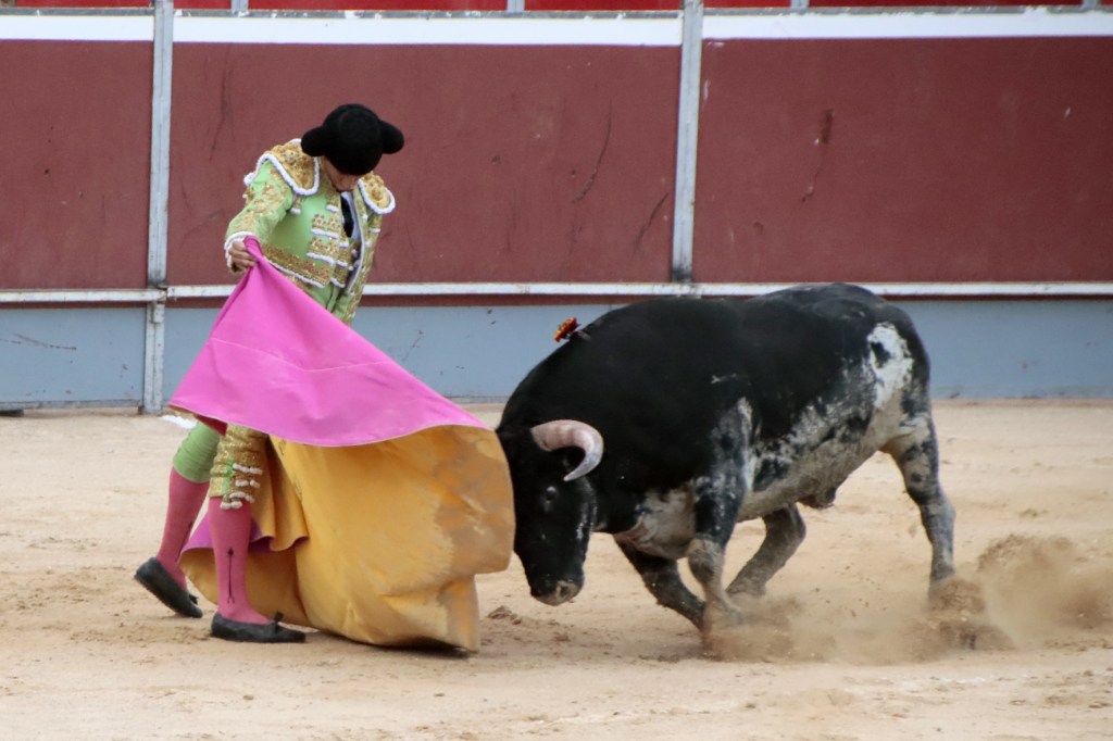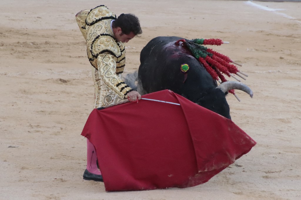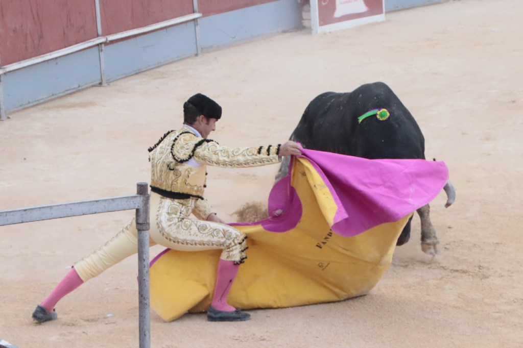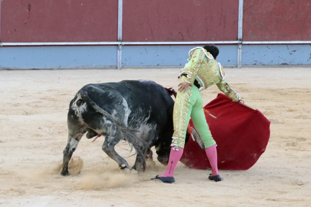 Salió de la enfermería Filiberto con un aparatoso vendaje a matar al toro de Fuente Ymbro que cerraba la tarde. En el primer lance con el capote, se pudo observar que se encontraba muy mermado de condiciones. Aun así, hizo un esfuerzo continuando la lidia, con un toro exigente que puso en apuros a la cuadrilla. Tras brindar la muerte del animal al maestro Espartaco, sin enmendarse y pese a estar mermado de condiciones y al viento, se fue al mismo centro del ruedo para propinar una impactante serie por el pitón derecho sin mover los pies del suelo. Lo intentó por el izquierdo, dándose cuenta que no podía cargar la suerte por esa pierna. Sin tiempo de nada más, el toro se vino abajo y se fue “a tablas”, echándose incluso tras un pinchazo. Tras levantarlo el puntillero, tuvo Filiberto que usar el descabello en varias ocasiones. La inoportuna puesta en marcha de la megafonía para anunciar los premios, dejó en “silencio” lo que merecía la ovación como reconocimiento al esfuerzo.