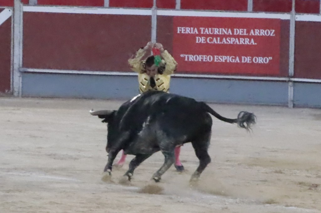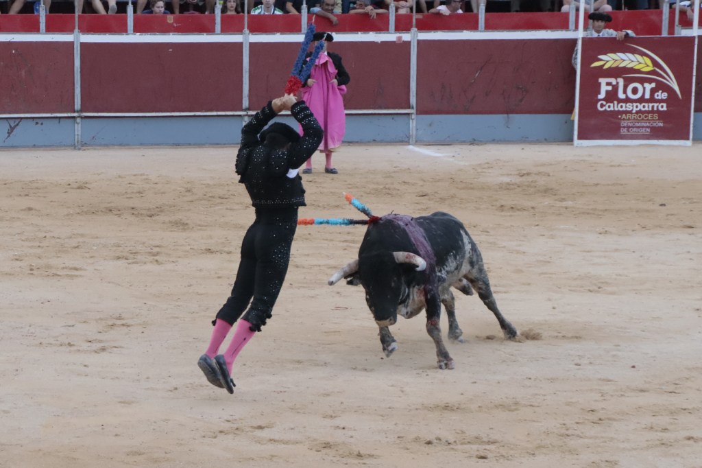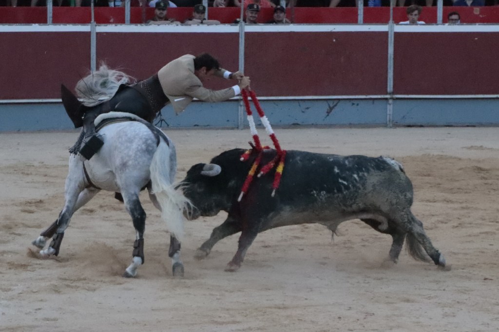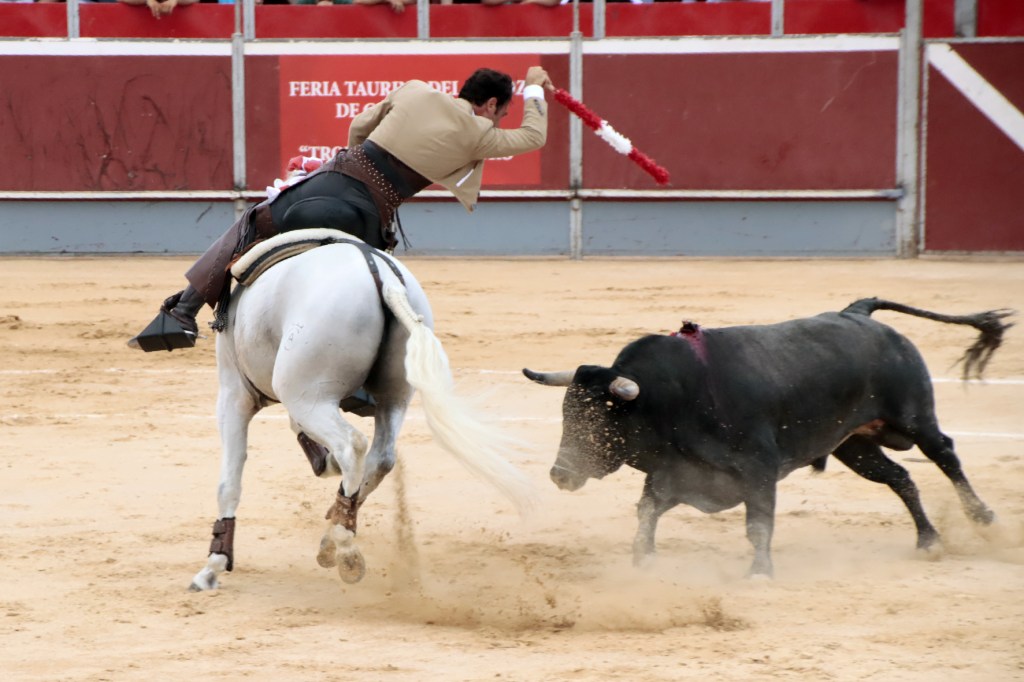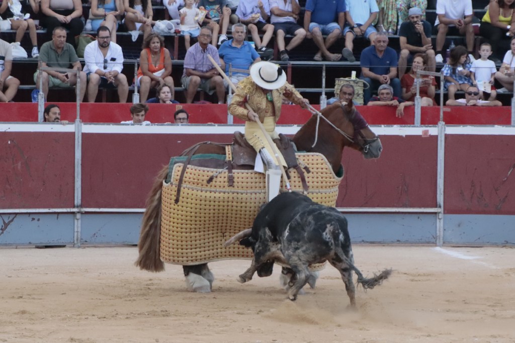 Abría cartel el rejoneador Andy Cartagena que debutaba en la Villa del Arroz. Ofreció dos faenas de distinto corte, más efectista y “moderna” la que abrió la tarde, y de corte más clásico la ejecutada en cuarto lugar en el orden de lidia. Muy seguro con todas las banderillas y vistoso en los adornos. Destacó un espectacular par de banderillas al cuarto. Acertó a la segunda en su primero cortando 1 oreja. En su segundo, se le fue la mano con un rejón muy caído, acertando la presidencia negando el segundo trofeo. 1 oreja y puerta grande.