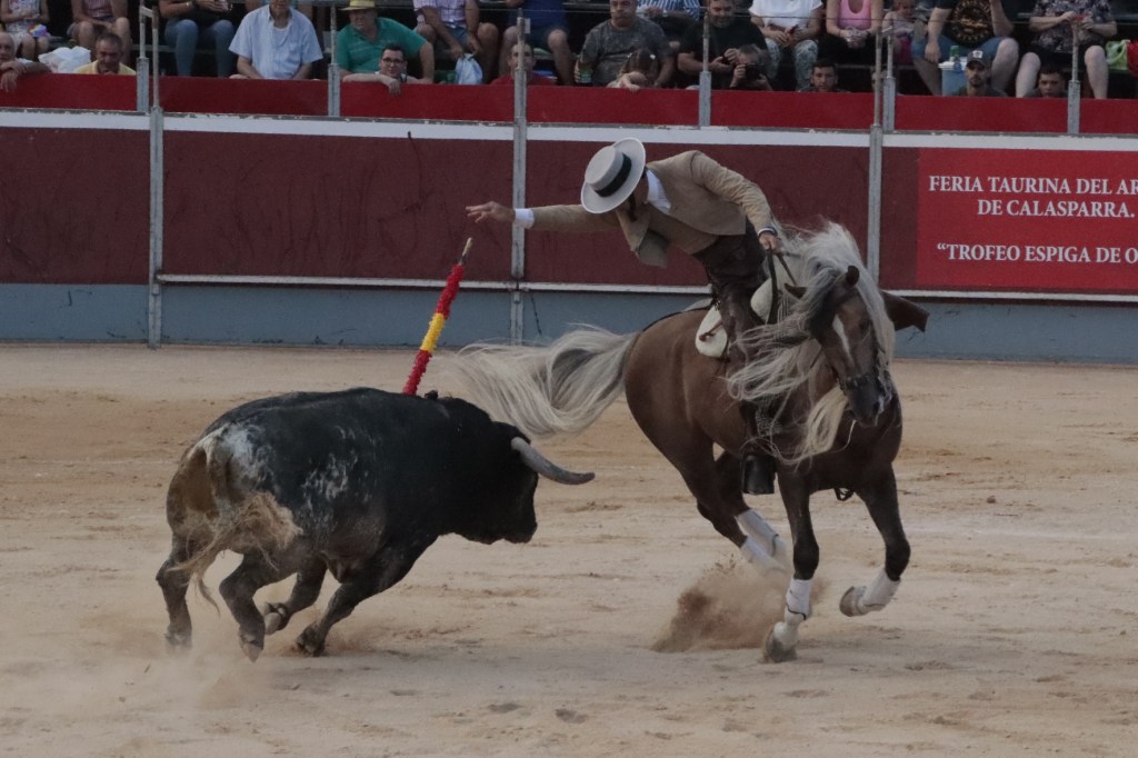 Calasparra (Murcia). Corrida de toros mixta, en formato “concurso de ganaderías”. Dos tercios de entrada. Toros de Benítez Cubero para rejones y de Pallarés, Espartaco, Albarreal y Fuente Ymbro para la lidia a pie. Matadores: