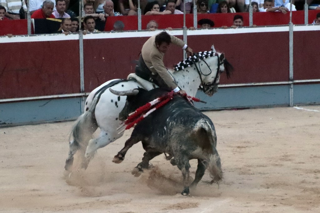 A El Fandi le correspondió en primer lugar un toro de Pallarés, con los pitones escobillados y poca transmisión. No entendió el granadino el sentido del “concurso de ganaderías”, pasándolo de puntillas por el jaco. Hasta cuatro pares de banderillas dejó con la espectacularidad que le caracteriza. Embestía el animal al ralentí, pero con escasa fuerza, lo que dificultaba que se le bajase la mano, e imposibilitaba la transmisión. Administró con maestría al animal, dándole el tiempo que necesitaba. Terminó recurriendo al efectismo, antes de dejar una certera media estocada en buen sitio de efecto fulminante. 1 oreja.