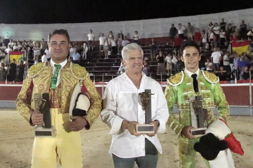 La tarde se la llevó Filiberto, que mostró un sitio en la plaza más propio de quien torea mucho más. Recibió con soltura a su primero, “Amapolillo”, de la ganadería de Espartaco, levantando una gran ovación. Entendió el calasparreño el sentido de la “corrida concurso”, colocando al toro en suerte para gusto de los aficionados más exigentes. Entró por dos veces al caballo con bravura. El picador, Juan Manuel Elena, fue ovacionado. Tras un vibrante quite, cogió la muleta con la mano izquierda, exprimiendo al toro hasta la última embestida, destacando la templaza y largura de una rotunda serie de circulares que levantó al público de sus asientos. Hasta hubo “arrimón” y desplante antes de enterrar el estoque tirándose a matar de verdad, resultando prendido y herido en la rodilla izquierda. Tras un certero descabello, fue premiado con las dos orejas. Palmas para el toro de “Espartaco” en el arrastre.