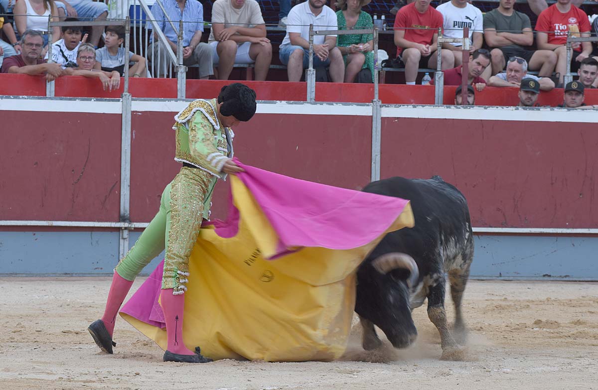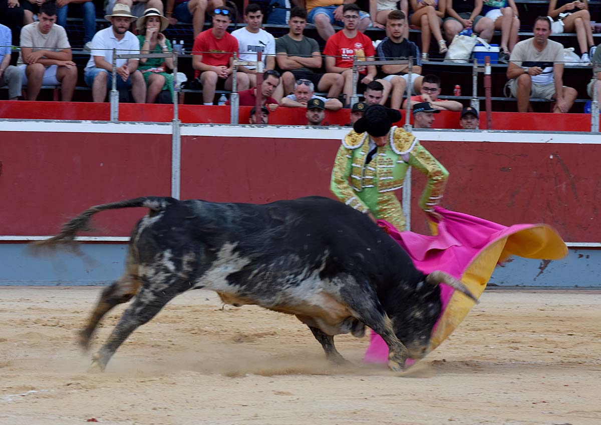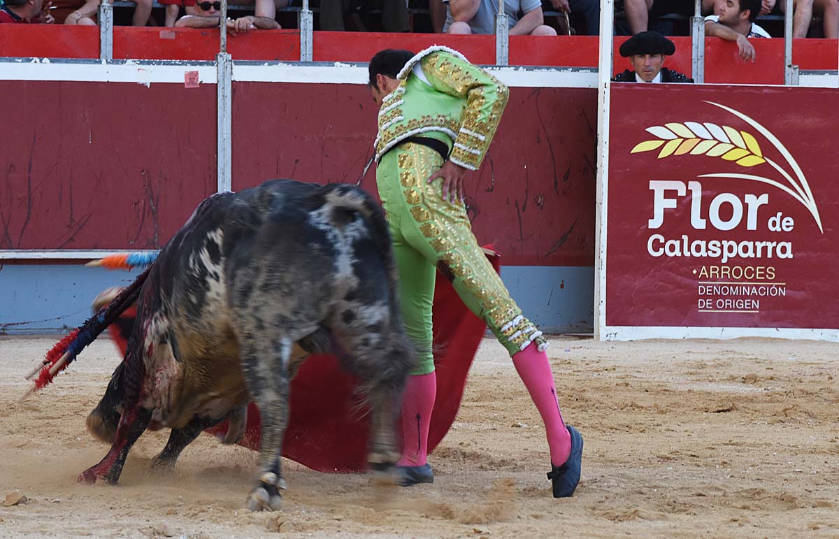 El torero de Calasparra se fusionó con la encastada embestida de animal dejando series intensísimas de muletazos de sublime expresión, templanza y largura. Filiberto estuvo rotundo con la mano derecha, y especialmente torero con la zurda. La traca final, pegándose el arrimón y llevando la emoción a los tendidos fue de mérito. Se tiró a matar o morir, recetando una buena estocada de la que salió prendido de la rodilla derecha. Y al final, las dos orejas y el reconocimiento de la afición que quiere verle más tardes por las plazas de toros.