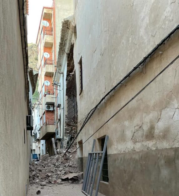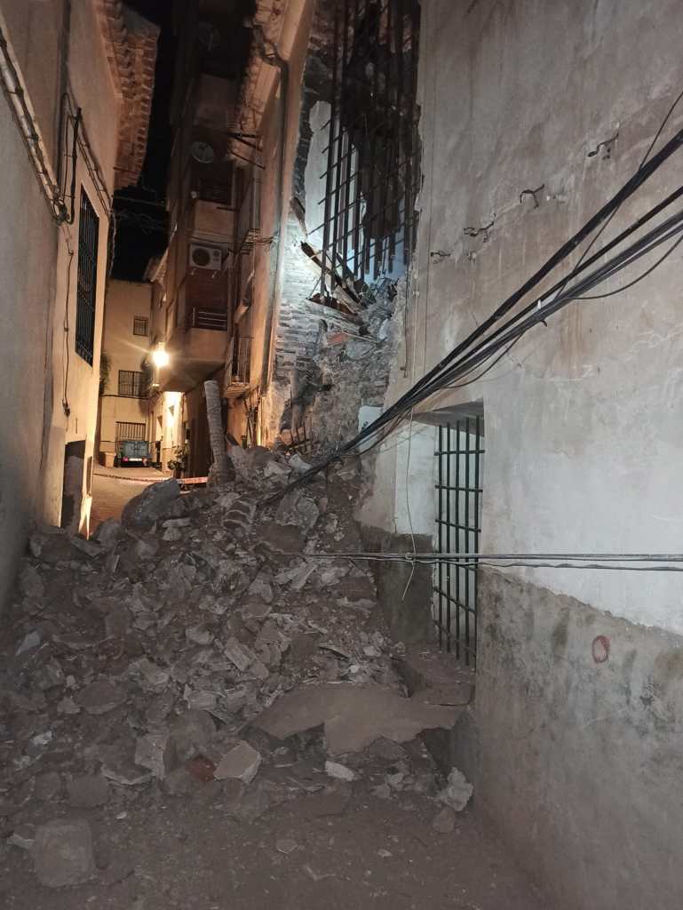 Discurrirá finalmente por Gran Vía el mismo día y a la misma hora, las 15,00 h., debido a un derrumbe parcial del inmueble situado en la calle mayor, número 15, en su fachada recayente a la calle Pinar.