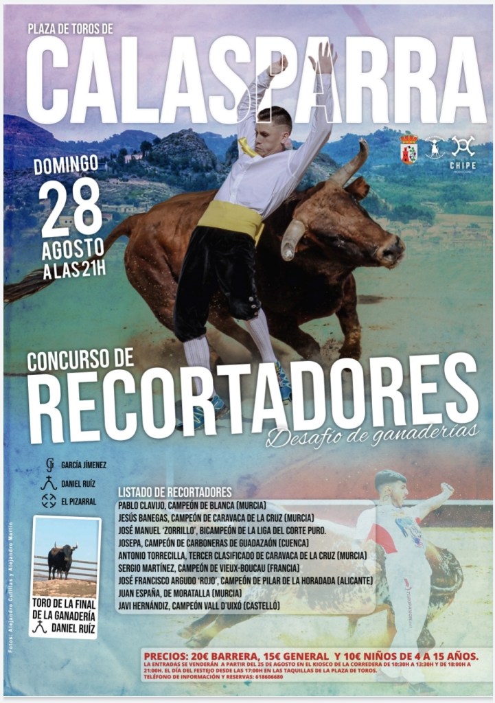 La próxima Feria Taurina del Arroz de Calasparra también contará con un concurso de recortadores. Como no podía ser de otra manera, la vuelta de los toros a la Villa del Arroz también cuenta con uno de los espectáculos que más ha conseguido captar la atención de los públicos en los últimos años. Y es que los festejos populares en el Levante español levantan pasiones. Esta vez los recortes se celebrarán en Calasparra el domingo 28 de agosto, a partir de las 9 de la noche, en la plaza de toros “no permanente” donde este año se van a celebrar todos los festejos taurinos organizados en la población.